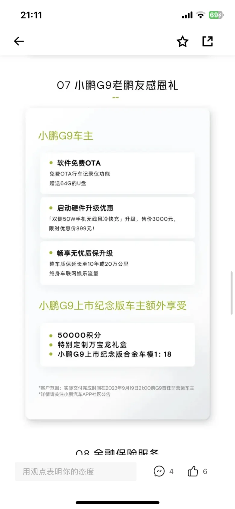 5⃣️好的产品不仅要会做加法,还要会做减法,这次新款取消了音乐座舱,单拿音响不再标配,这点是非常正确的,对我来说开车时音乐能听就行,鹏厂自主研发的XOPERA音响对我来说就已经够用了,减配后车价得到了实质的降低这个非常友好,从现在反馈来看大部分车主还是比较满意的,有需要高音质的鹏友也可以选配单拿音响,两全齐美。从最近几次ota 和新款G9来看,最近的鹏厂主打一个听劝,车主说不要就可以砍掉,车主说需要就尽快增加,很好的聆听了消费者的需求,点赞。