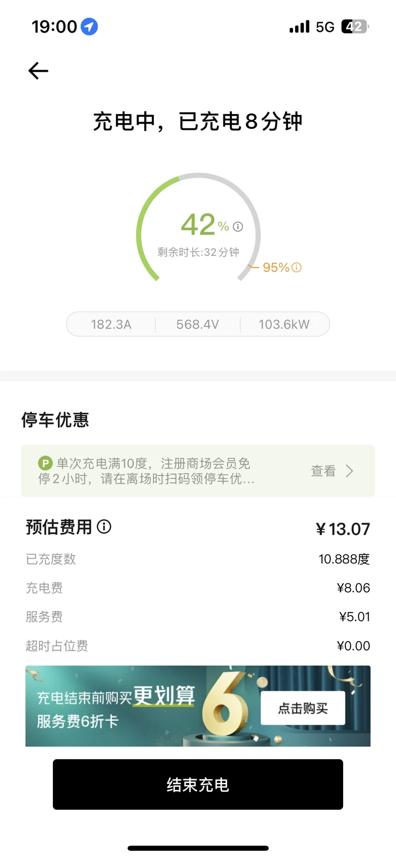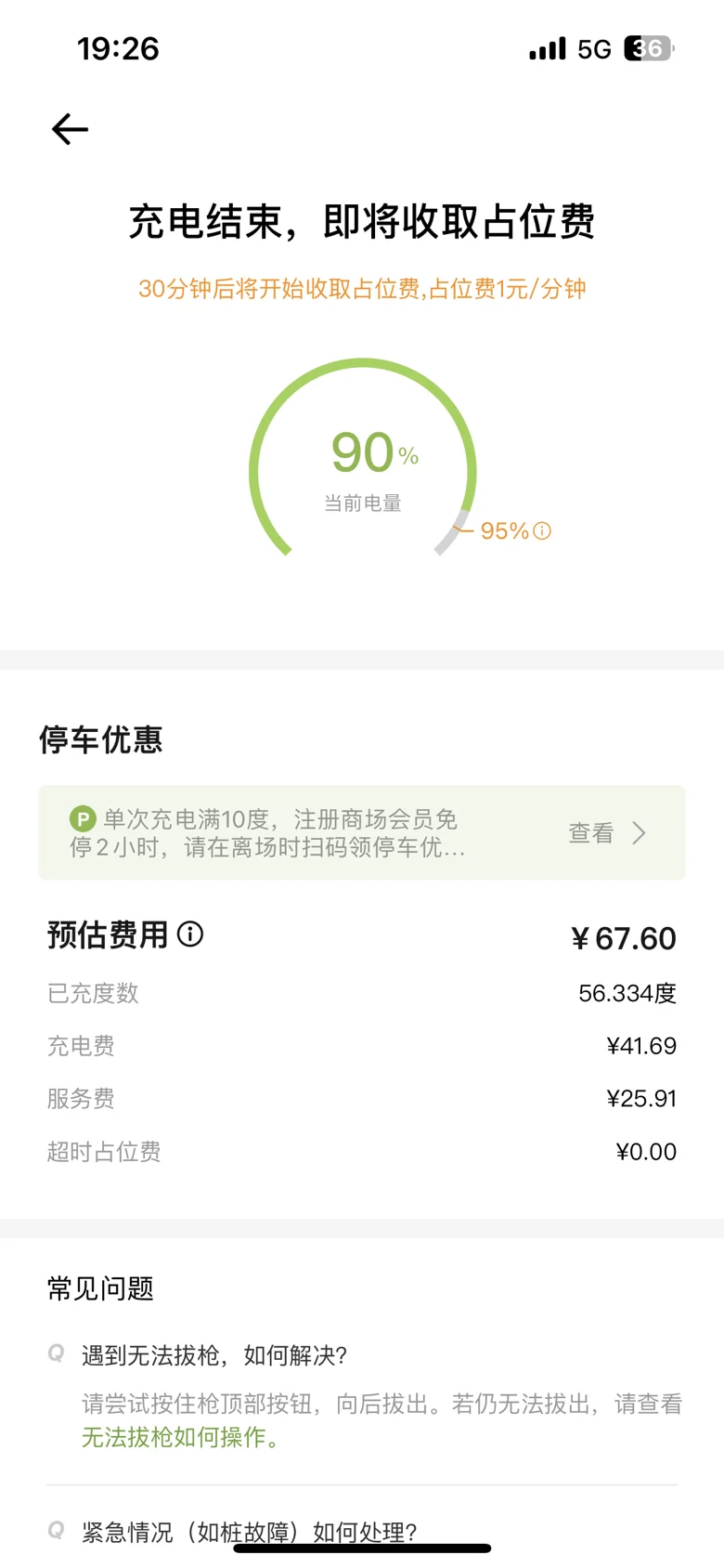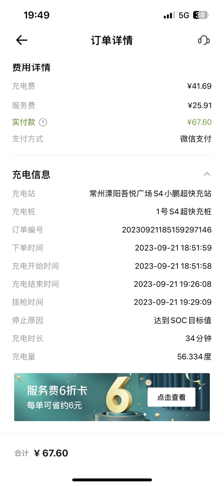 #与小鹏G6一拍即合# 提车两天开了一百多公里,本来就50多的电,想着去吾悦买杯咖啡,顺便体验下超充,34分钟充了56度电,总体感觉没有很快,下次还是普通快充充电了,虽然1.2一度也不是很贵,不过超充的桩还是挺帅的,充了个百分之90表显示530左右里程,信心满满,