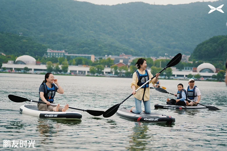 鹏友们各自驾乘小舟到湖面,欢笑声让美丽的风景欢乐了起来