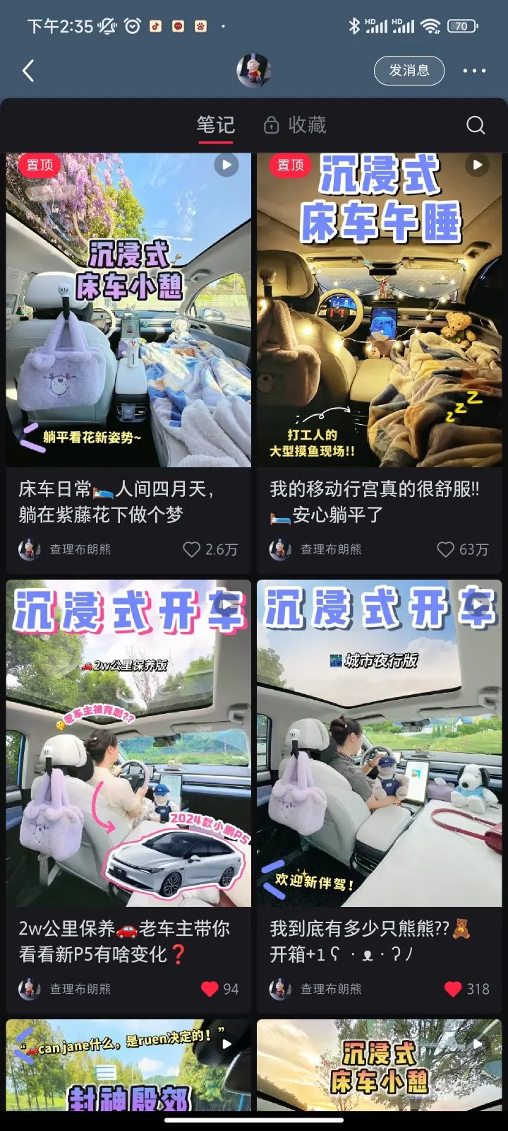 我妹的回答震惊到我,她说小红书上看到过很多小女生把P5改造成了家一样,车内空间也大,小情侣和单身工作休闲都很方便…她一边举例,一边给我看小红书她关注的人,说着她的理解和想法,这就太上道了,原来已经有关注基础,那就该我上场了…