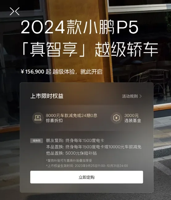 从官方政策优惠来看,2024款小鹏P5首发优惠可选择减免8000元,另外还有3000元选装基金。也就是说,新款P5已经将入门价格下探到14万附近…真的在纯电轿车里,还有谁…