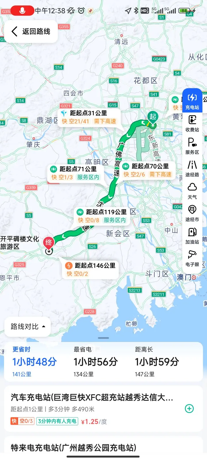 借着节假日约上三两朋友,从广州出发,定位开平碉楼文化旅游区,全程两小时,因为提前做好了规划,以佩琪目前的续航毫无压力,整体旅程不会疲劳,因为十一节假日的关系,直接选择高速路线,中途很多补能和上厕所的服务区,粤西的整个高速线路服务区非常奢华,让我大开眼界…