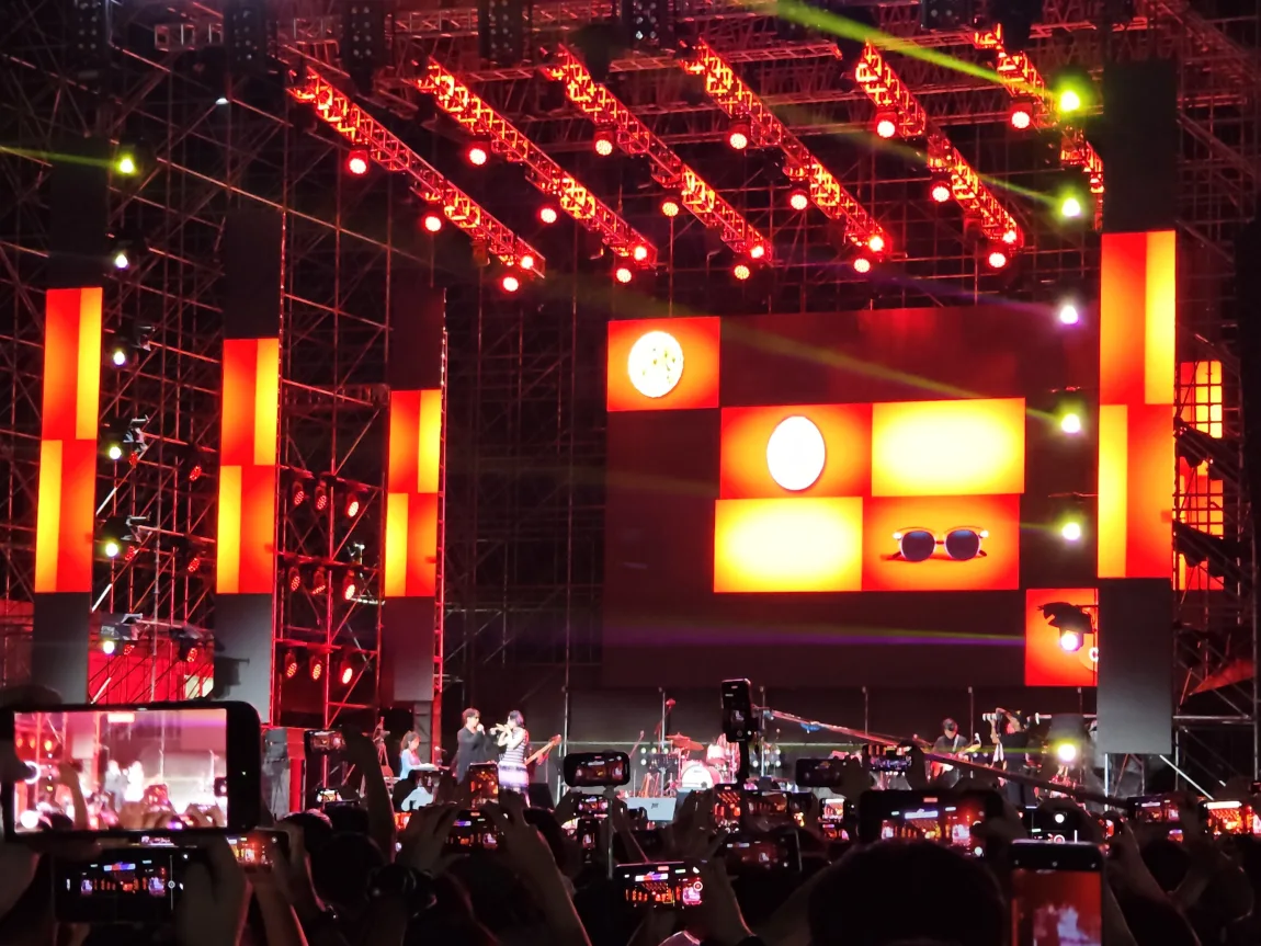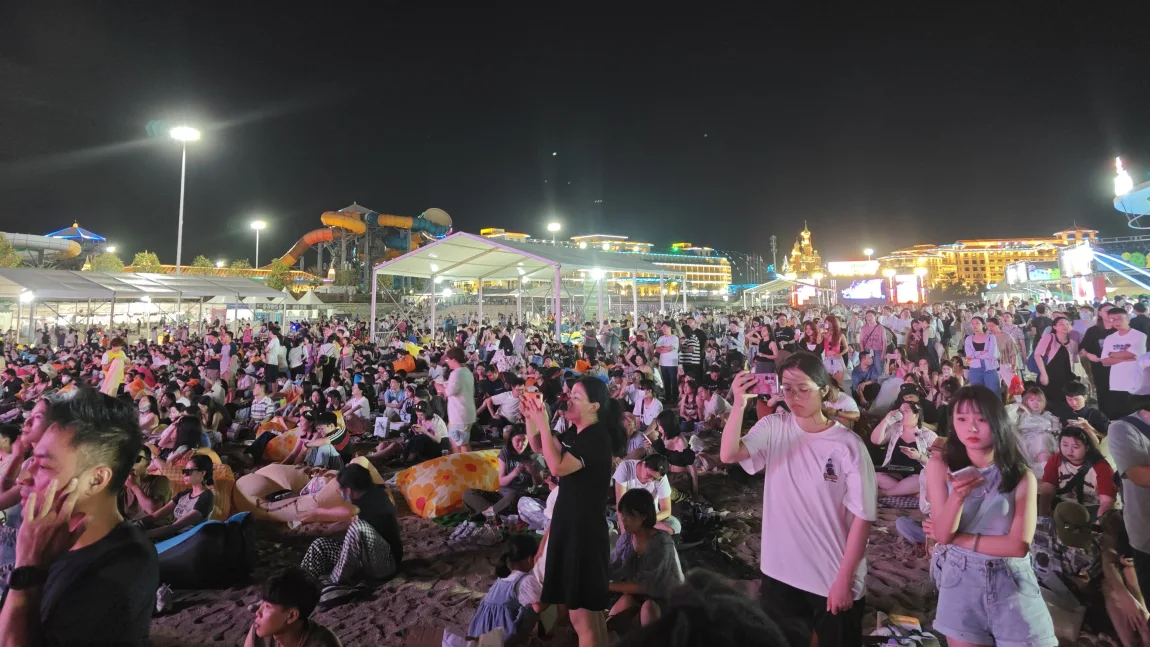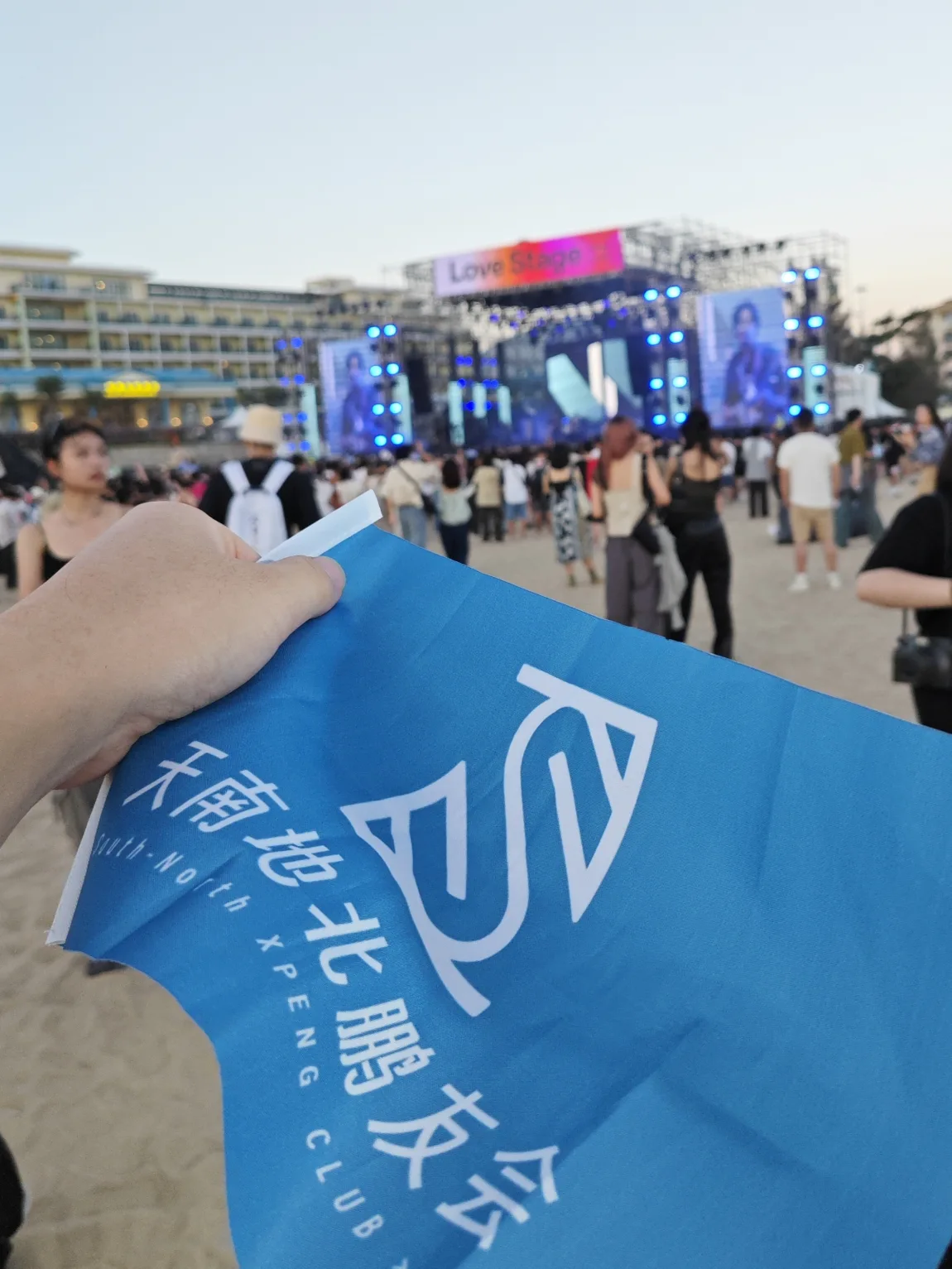 🎵排队、检票、入场,音乐节分为2个舞台,分别是草莓舞台和爱舞台,这次的场地在海边沙滩上,面积很大,所以舞台间隔也很远,在沙地上来回走路简直累死,更过分的是这么多人同时“迁徙”,扬起的沙尘仿佛难民徒步。