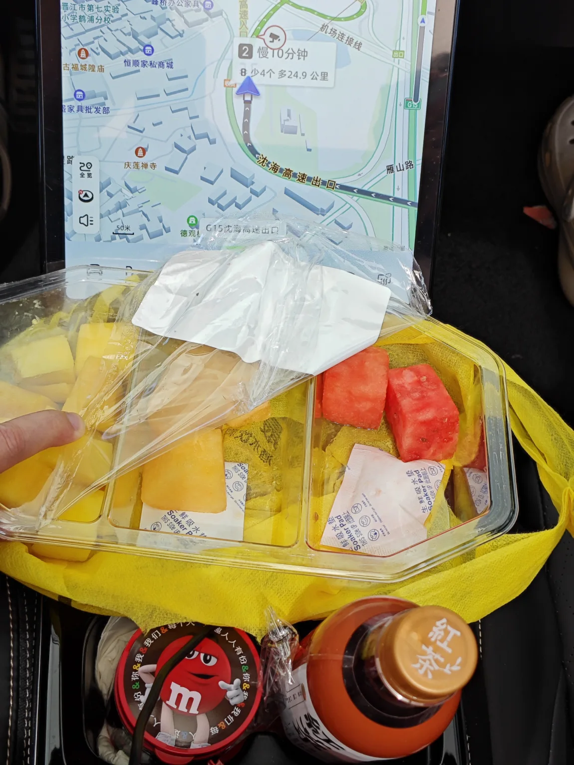 🎵音乐节下午2:40开始,因为天气炎热,我们准备傍晚5点再入场,计划上午先出发到泉州市区,吃点地道的泉州小吃。。。。计划的是挺好,谁懂早上有事情耽误了,快12点才从厦门出发,买了点水果路上吃,P5怀档的设计,让扶手箱这块空出来,很适合放东西。