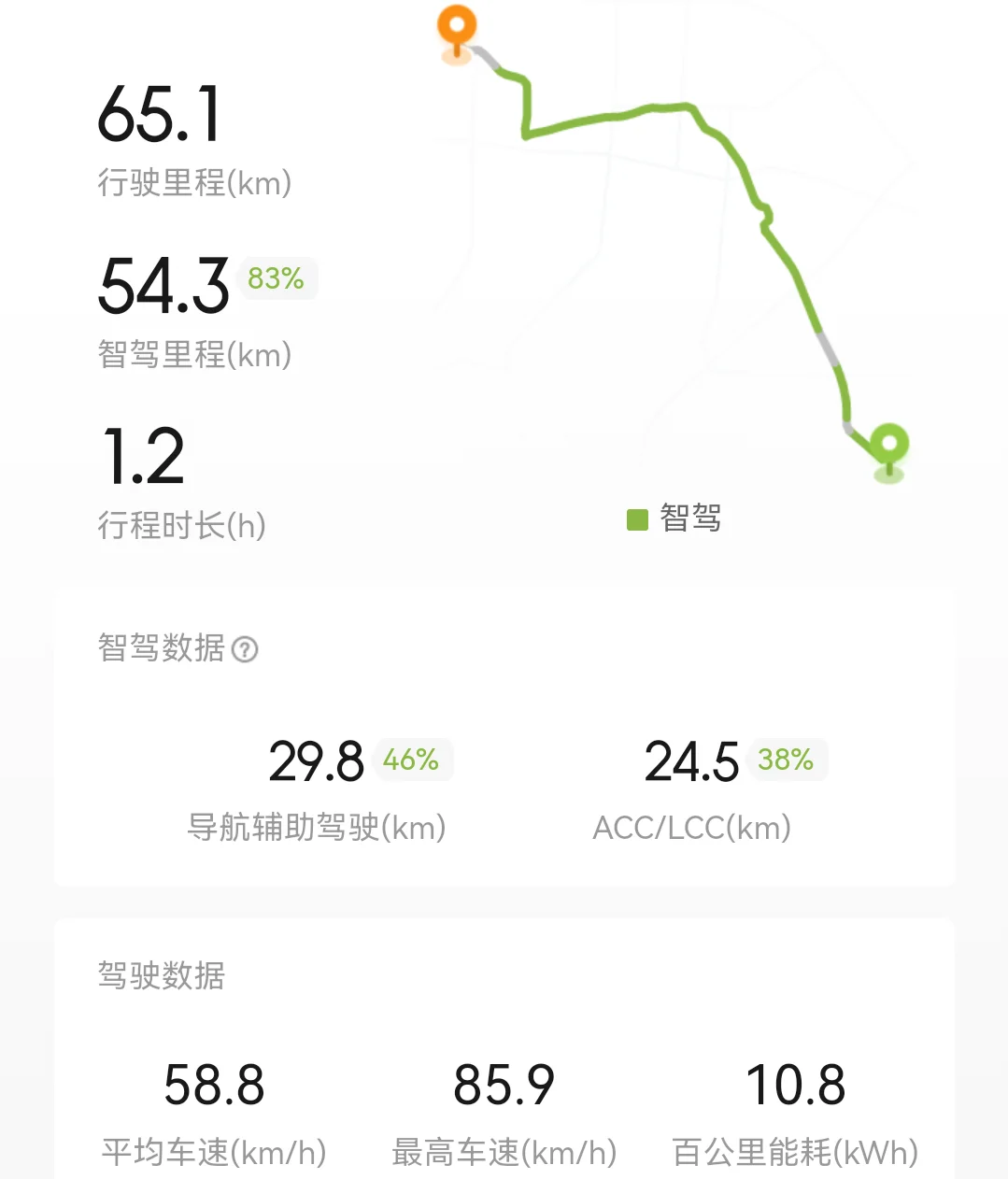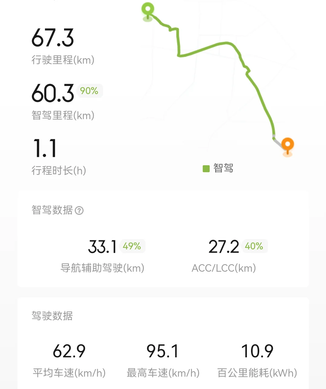 一路过来都是公路,90%的路程都能用上智驾,高精地图还覆盖了绕城高速的维修路段,开起来也很轻松。