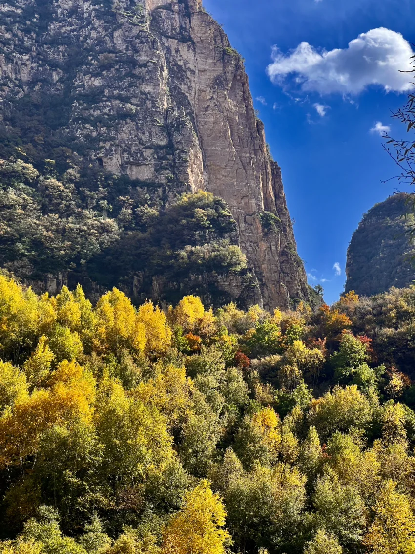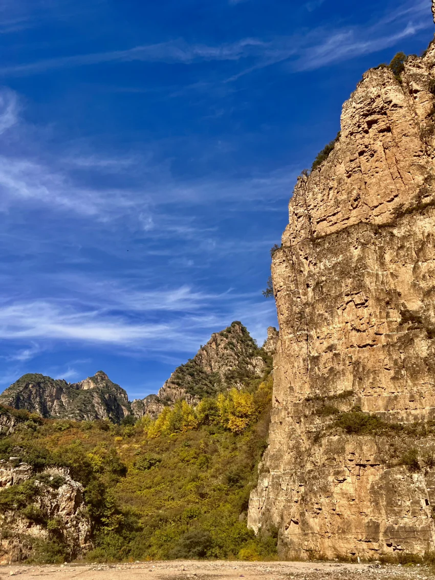 飞狐峪作为太行八陉之一,自古以来就是军事重地,早秋季节山色丰富,路况很好。从涞源县到蔚县,导航不走高速🛣️,经涞蔚线/孟涞线,一路风光都不错,山景逐步险峻多变,中间有一段,还颇有北疆阿勒泰秋天的感觉和风范。飞狐峪一炷香附近停车混乱,掉头车辆比较多,如果不是特别想要拍照打卡📸,慢慢路过乘车一览也是不错的选择。