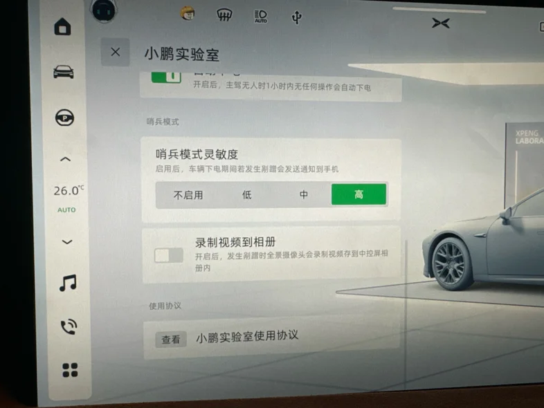 目前在用P7i,因为对P7的了解知道有异常震动提醒,所以停车基本没开过哨兵模式录制视频,直到前两天突然发现车被刮蹭的时候才发现,从五月提车到现在没有收到过一条车辆震动异常的提示,导致回溯不到被刮蹭的时间地点,今天又做了测试,P7i在开哨兵录制的时候是可以检测到震动提醒并保存视频的,但是不开的话就还是收不到异常震动提示,证明我车的震动检测模块应该是没问题的