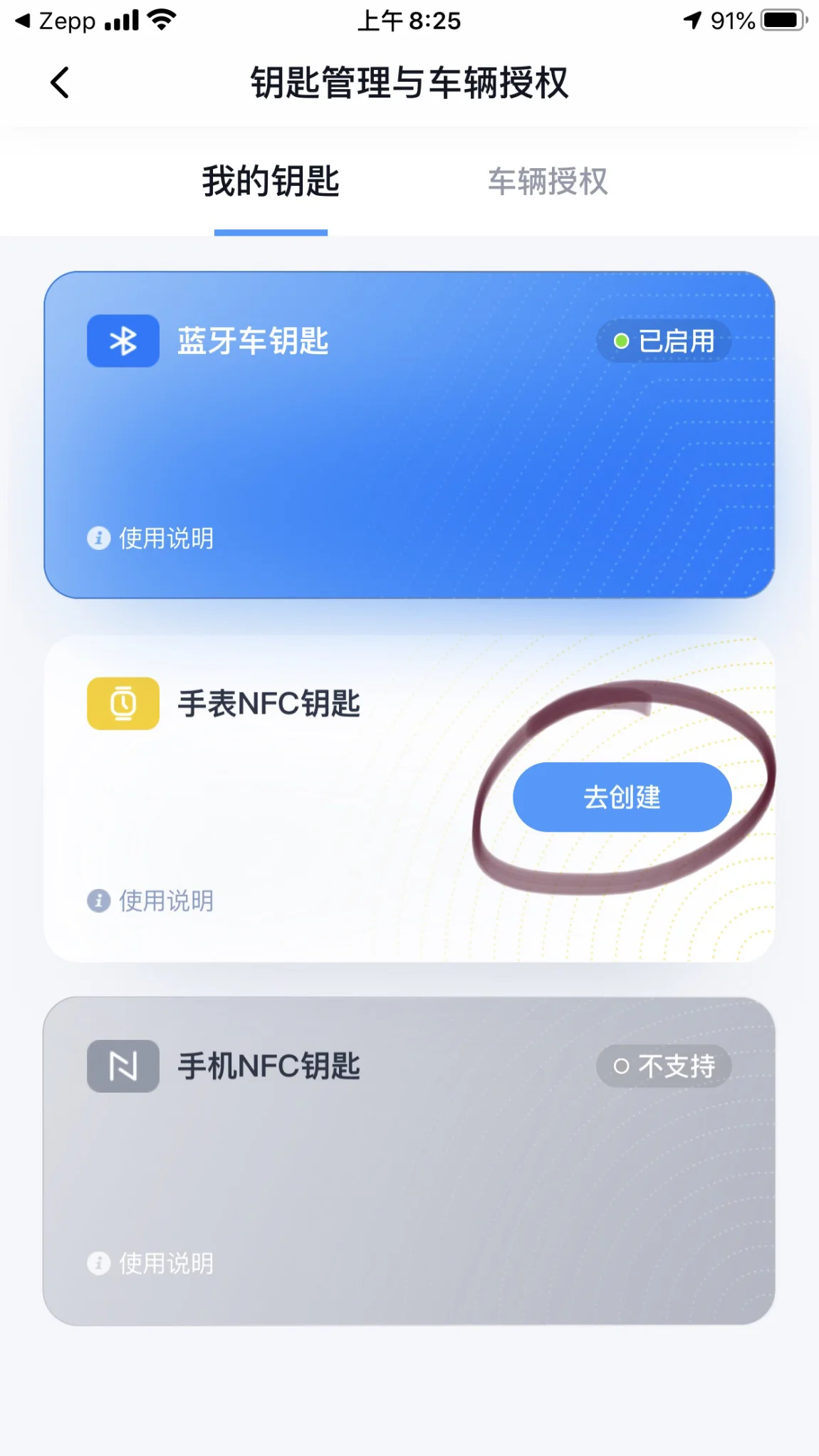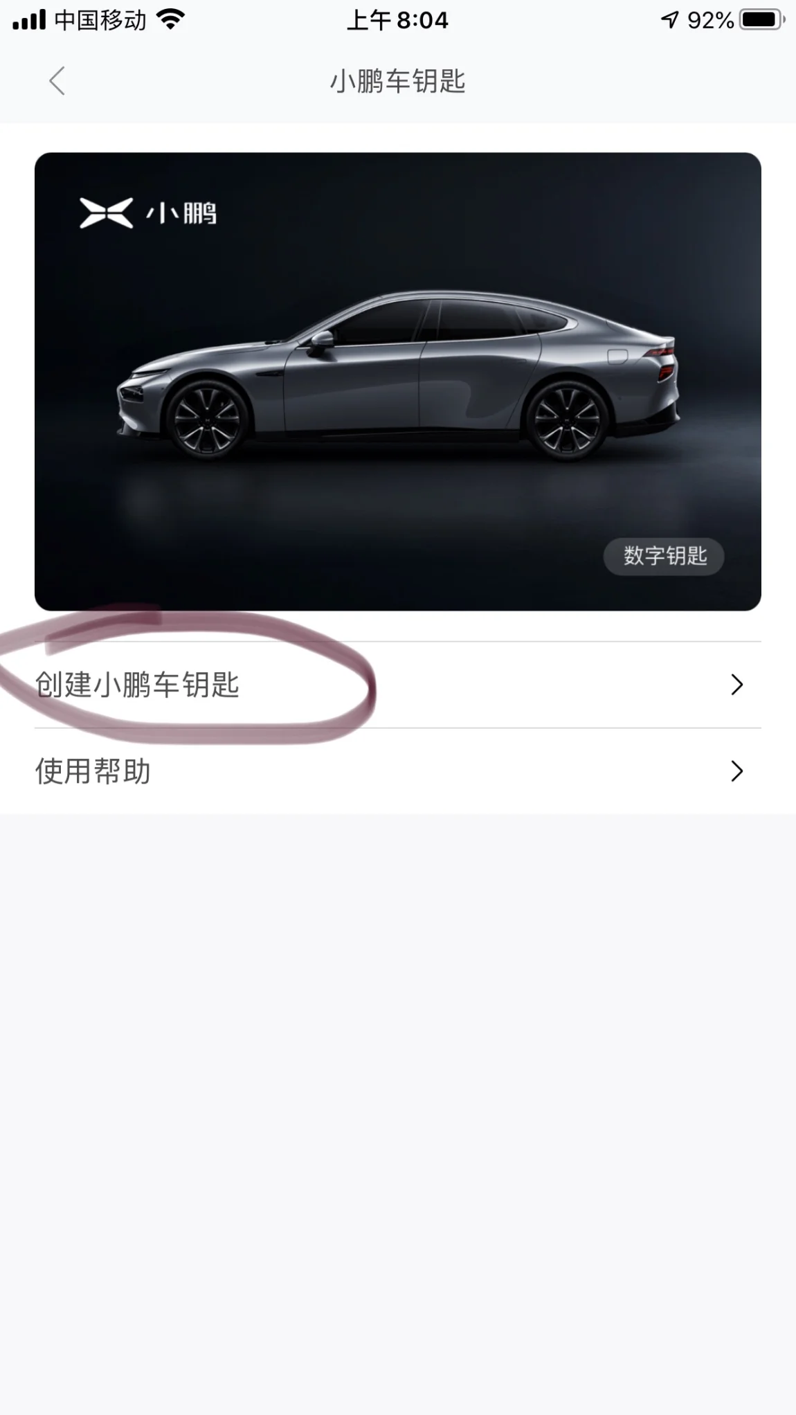 点击创建车钥匙后便会跳转到小鹏app的数字钥匙管理界面点击去创建