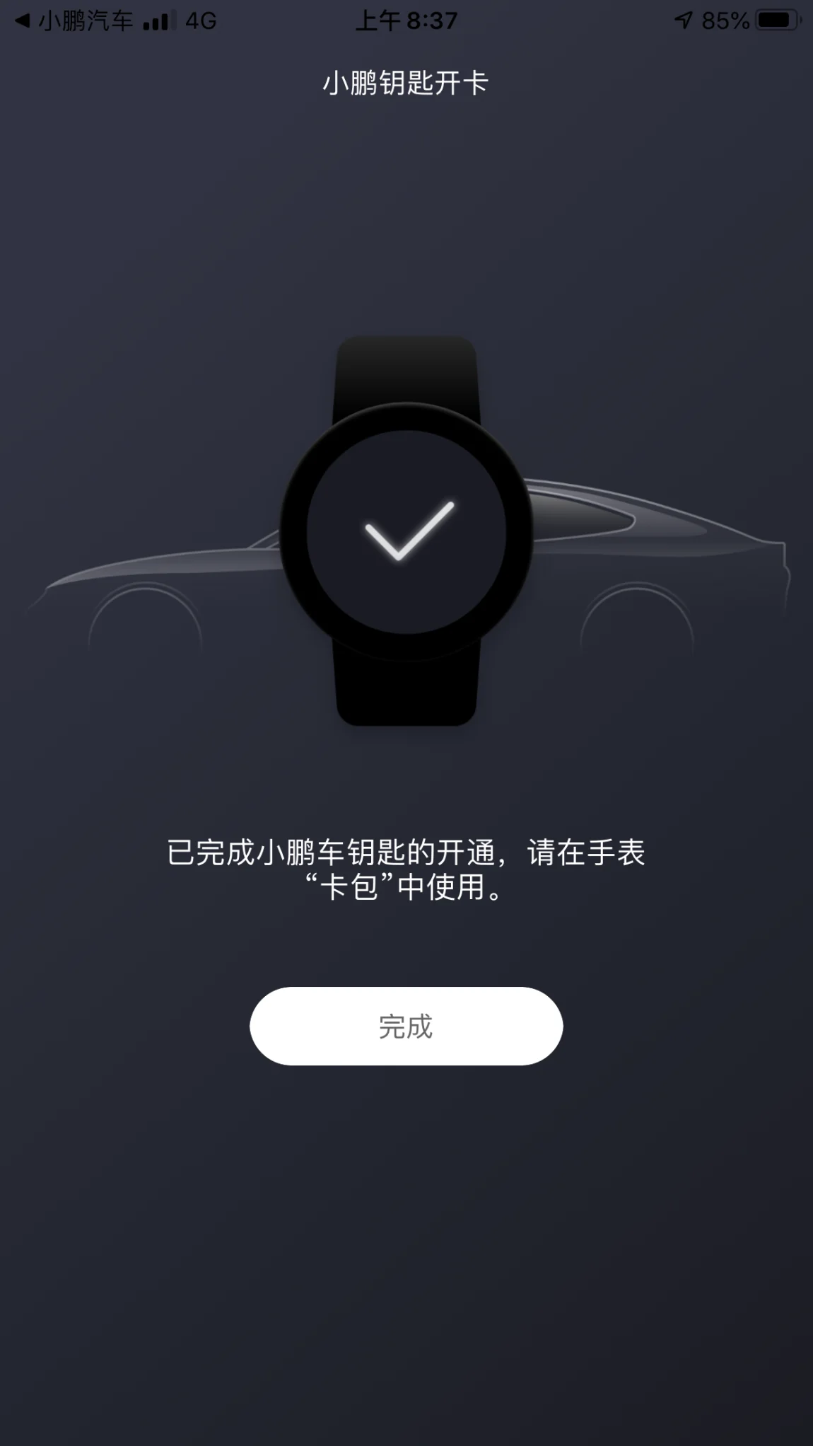 到这个界面之后手表nfc钥匙就设置完成了。可以在小鹏app后台看到。
