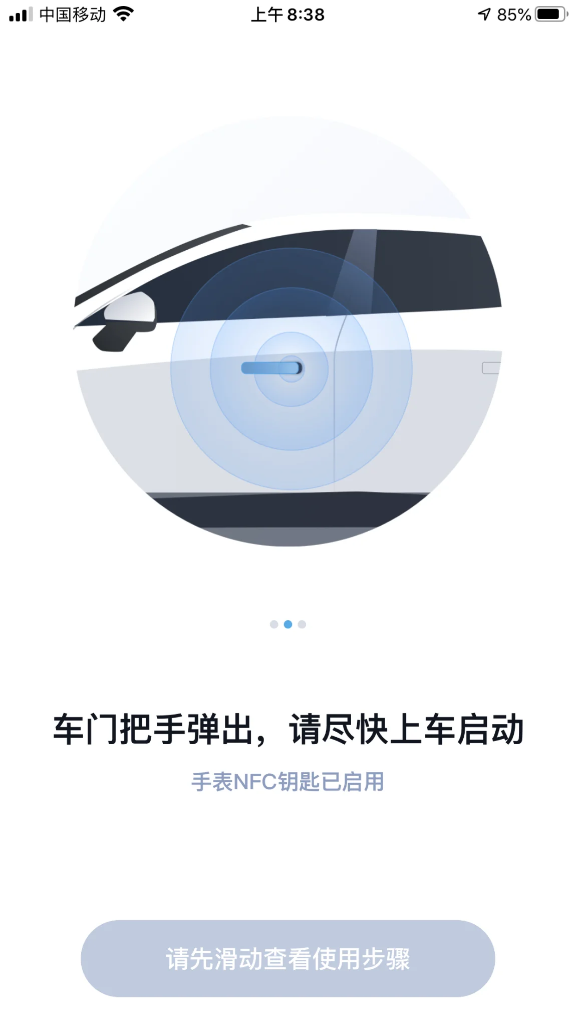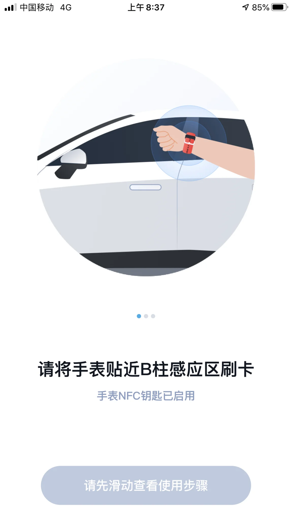这样手表靠近驾驶座b柱就可以开启车门了。