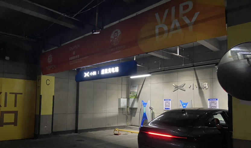 晶珠广场看起来应该是一个基本没有运营的商业体了,位于衡阳老城区主干道之一的船山大道,整体比较老旧,小鹏站点位置在大厦3楼,直接正对着坡道,上个坡直接车头就对着站点,P5恰巧直接车头进去。停车场车辆很少,应该是我见过车辆最少的一个。