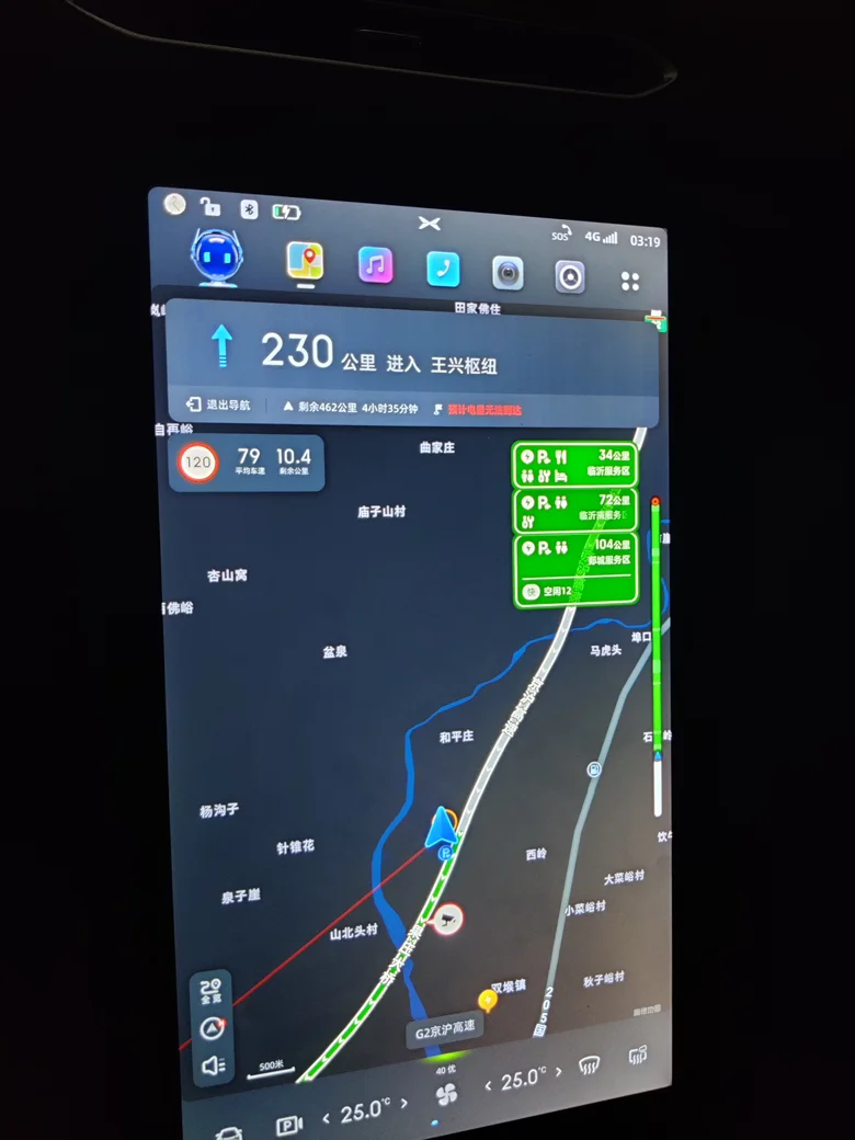 出发时导航中显示会有几处堵车,但是感觉影响不大,高速还算一路畅通,不过就是29号凌晨在高速充电时,充电桩不支持小鹏app,只能用e充电的app,但是e充电app崩溃,充电耽误了将近一个小时,最后还是找别人帮忙才充上电。