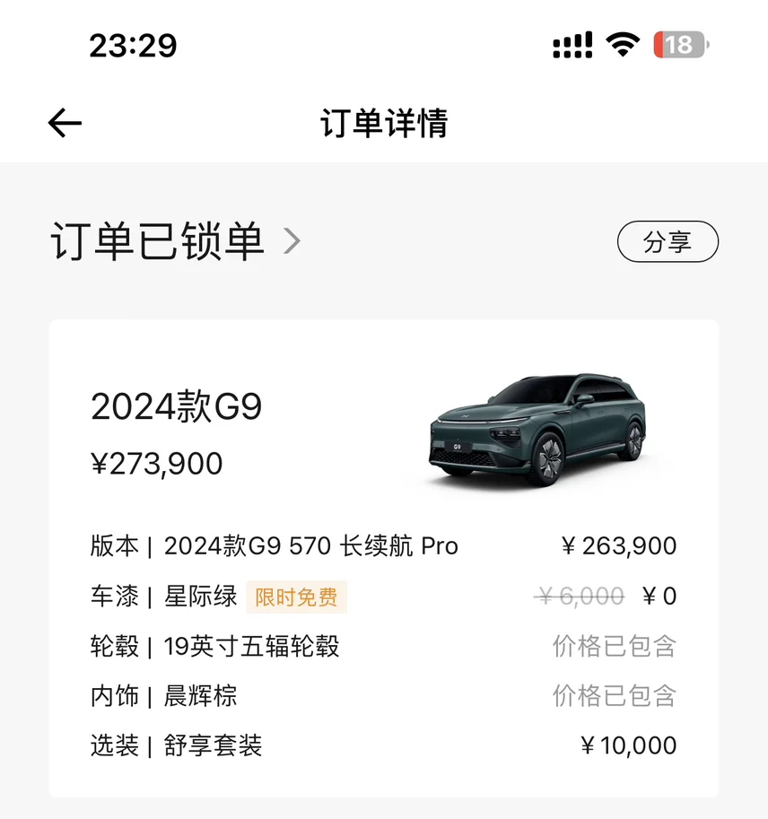回来不断自我洗脑,也给我对象洗脑,家里有个油车,现在油多贵,可以开我电车省钱。洗脑成功果断上船了下订570pro (目前我的城市还没有开通NGP,高速的够用),后来我对象问问有没有腿拖,有没有女王副驾,我说还需要1万人名币 ,他说加加,女王副驾给你化妆用,给你休息(都说好男人疼女人,反正我信了)还有电吸门太有逼格了,豪华车才会有的配置。退订重新下单了舒适套装,轮毂我也喜欢,但是预算超太多了,21的轮胎后期成本也比较高,19就19吧。