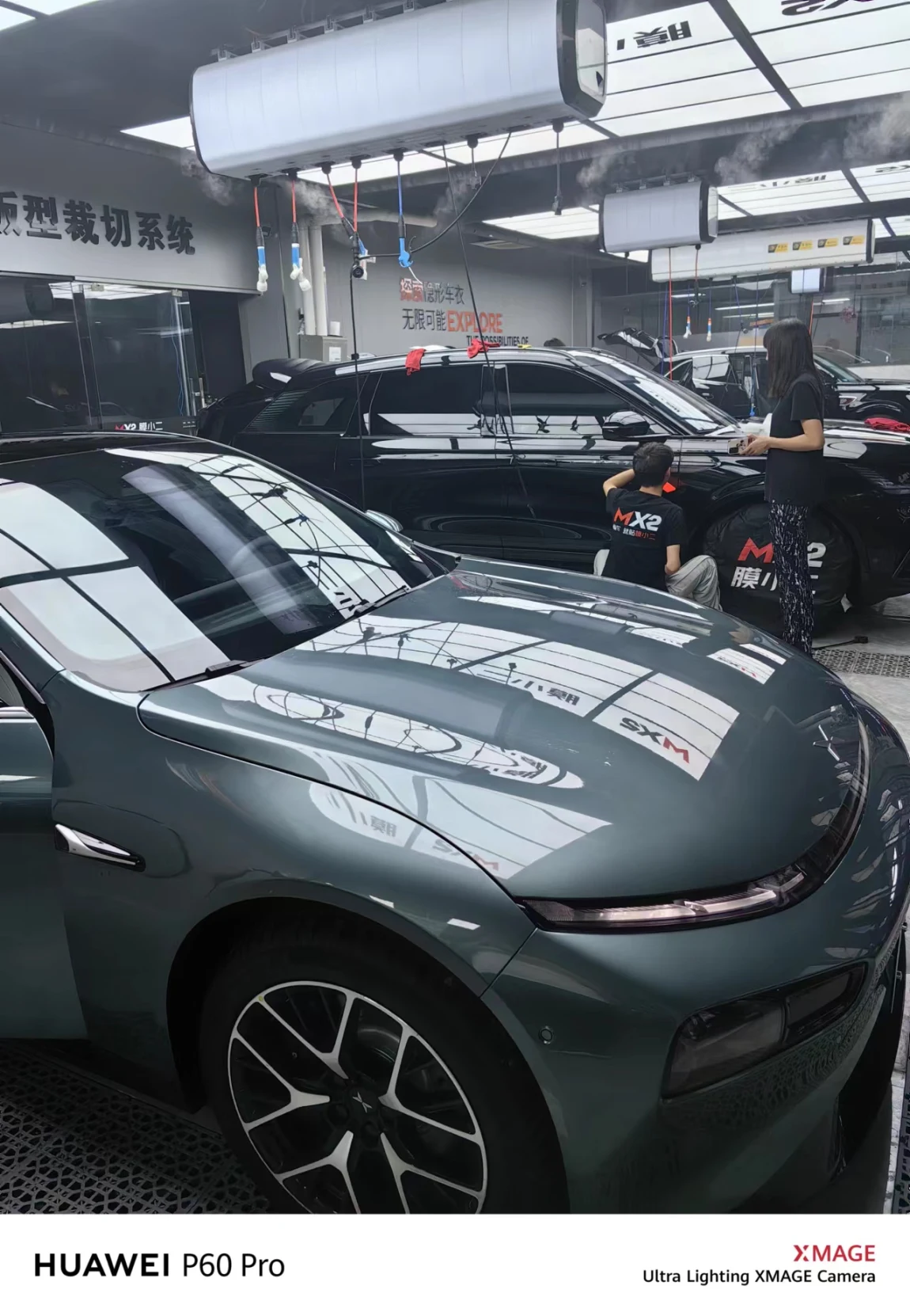 贴车衣之后的车身更漂亮了,不同光线环境下,这个星际绿颜色绝对是好看。这个环境下看着又有点深灰色的感觉。