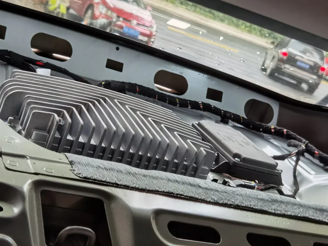 图三:功放在后排装饰面板下面