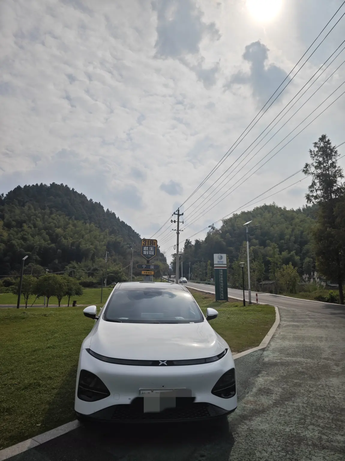 上个周末双休,我们就迫不及待的开着胖六从南京出发自驾了皖南川藏线,755充电到90%可以跑500多公里,完全没有任何的里程焦虑。我们晚上先是到宣城住了一晚,找了市区唯一一家小鹏超充站把电补满,充电嘎嘎快(宣城的小鹏超充站比宁国的贵,其实可以第二天去宁国冲电的)。
