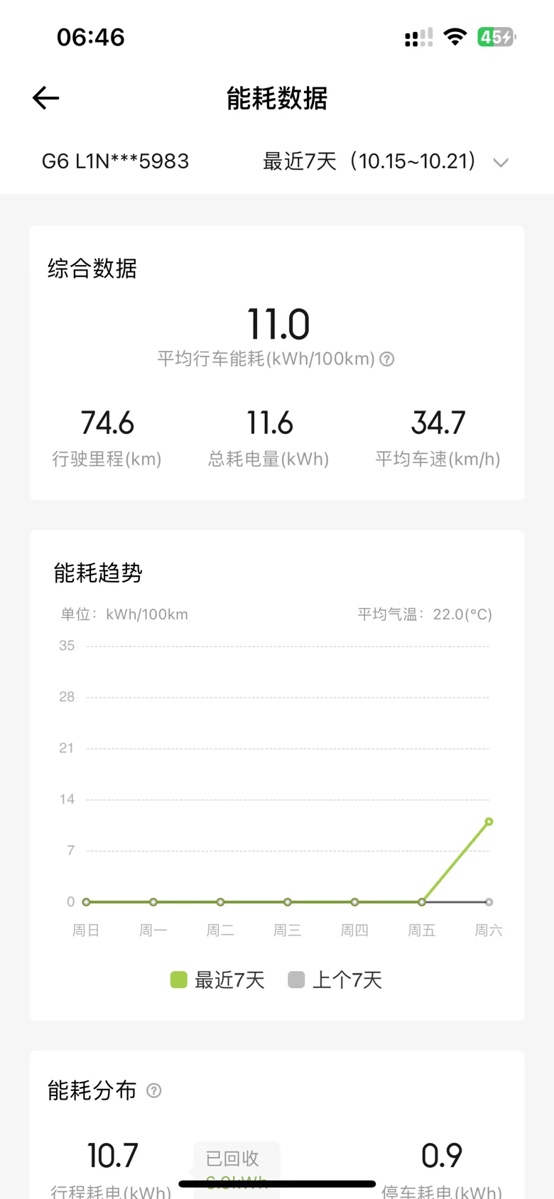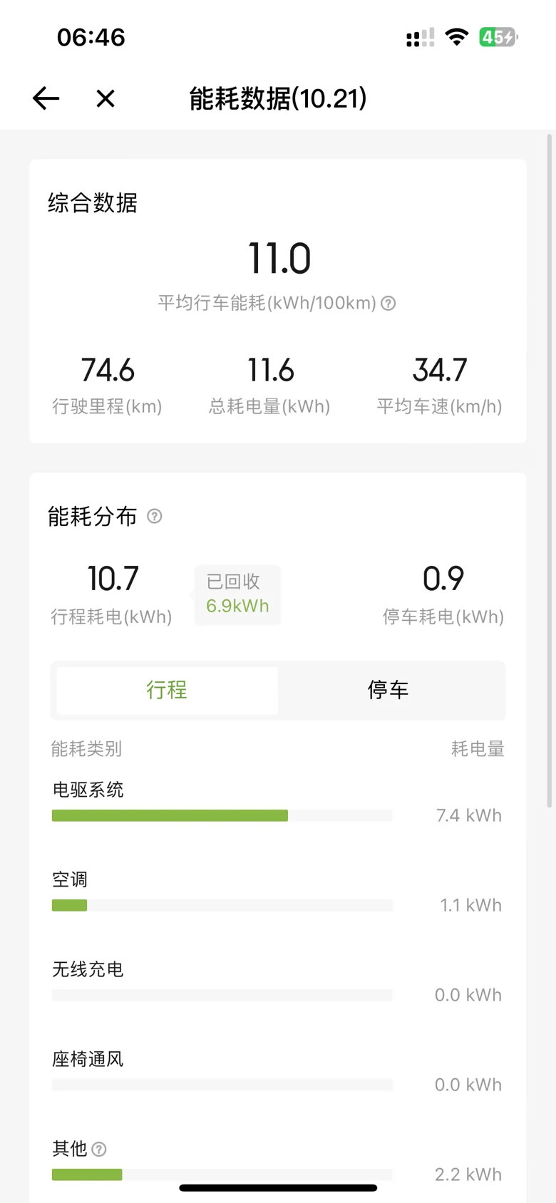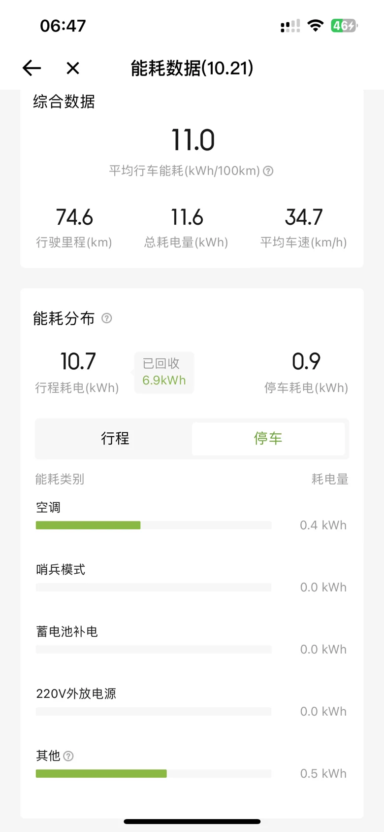 一天能耗给大家看,能耗达成率,行驶74.6+剩余397=471.6÷580=81.3%,如果是车辆WLTP计算,剩余里程在城市驾驶,绝对实在的无可比拟