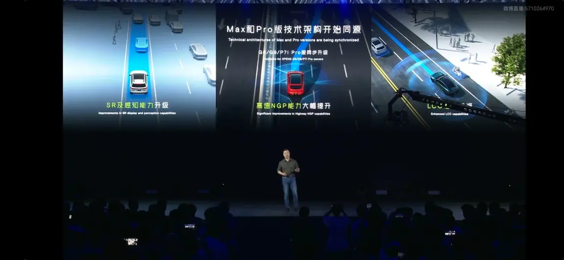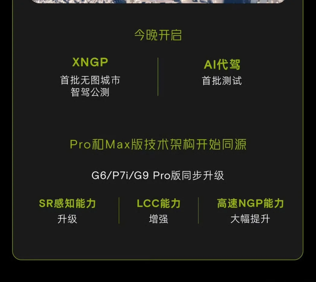 在这次发布会上,大师兄宣布:max和pro开始架构同源,小鹏把技术优化降本增效的红利及时回馈给车主。G9/G6/P7iPRO版同步升级,高速NGP大幅升级,LCC能力增强。