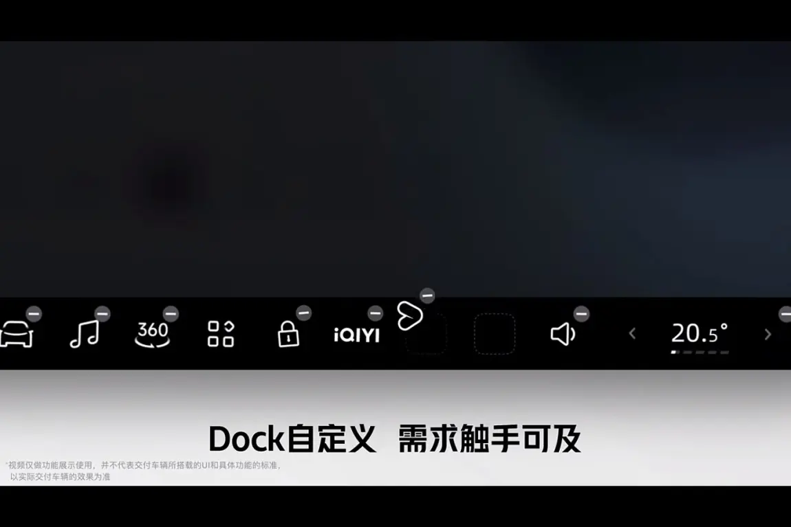 XDock 是面向大横屏很关键的一个设计,本次的 Dock 自定义除了常规的拖拉拽以外,看到了两个细节:第三方 App 在拖拉拽的过程中会对 UI 进行重写,确保整体风格一致;根据天气不一样可以进行加热,空调等快捷键的自定义。(不知道这个是手动还是系统自动根据环境设置生成的)