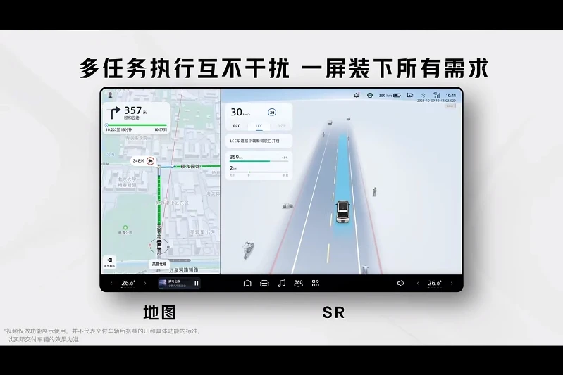 本次分屏多任务支持同时显示两个任务,地图作为常驻任务可以和 SR,设置,视频,音乐组成多个组合,基本上可以覆盖大多数场景了!