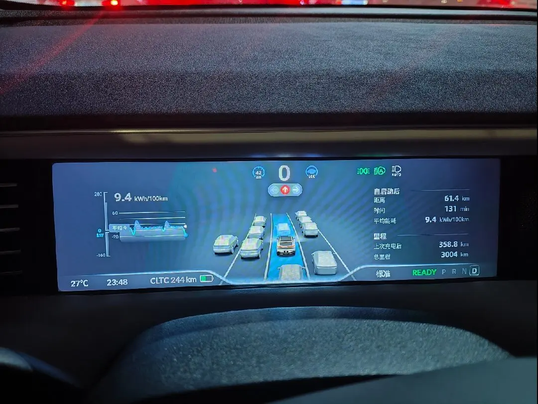 当天不同时间段记录了今天的里程以及能耗情况,因为有时候比较堵车,所以总体速度并不快。