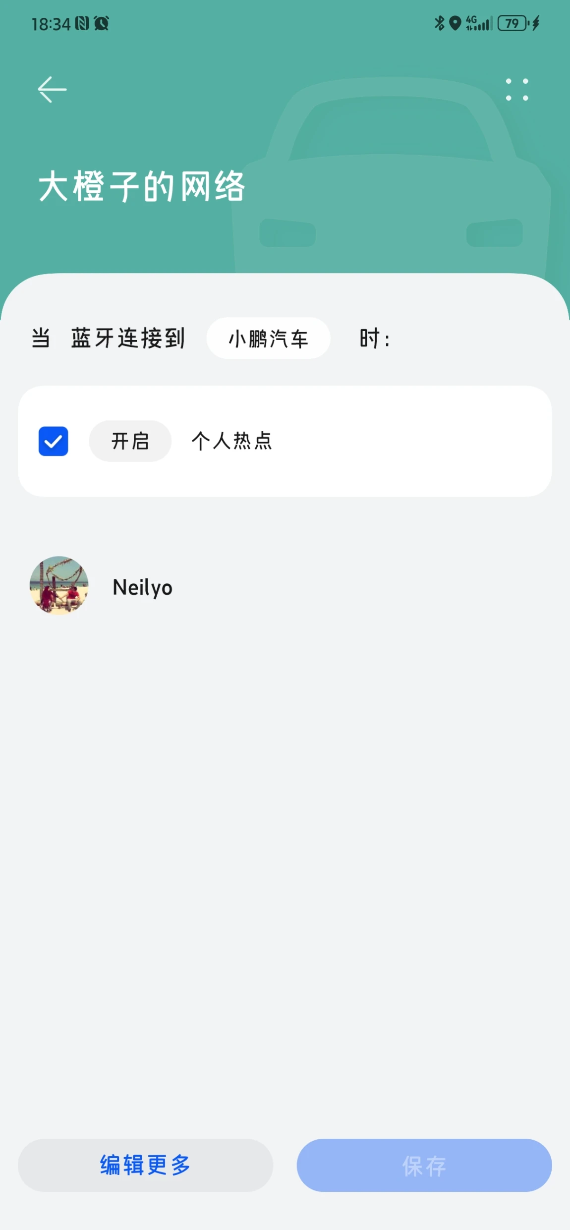 3、设置手机智慧场景(华为手机是智慧生活里的场景)如果蓝牙连接到小鹏汽车就打开 手机热点。