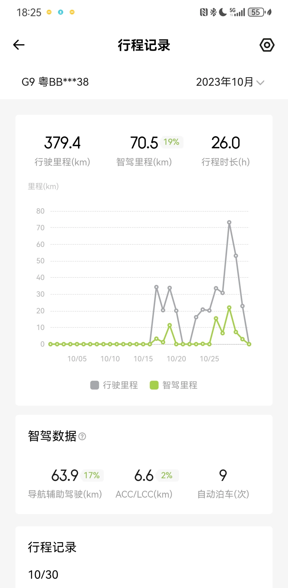 总的来说我还是满意G9的智驾的,实际开下来大家可以看我截图,大概有20%的时间开了辅助驾驶,而且我是很保守的开法,就是百分百确定前面没有断点不用接管了才开(至少能爽个几公里那种)。