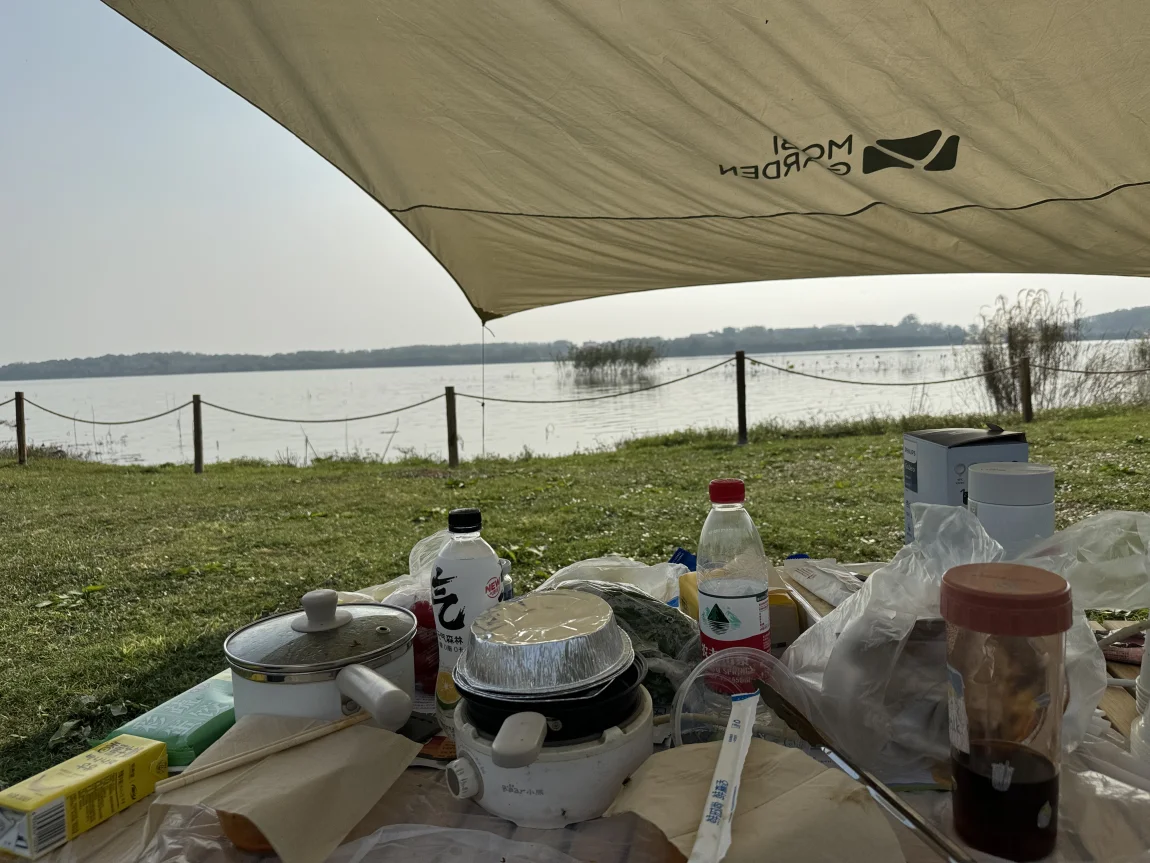看这平静的湖面来平静自己的内心。一片湖,一杯茶,放空的自己。去的位置有个很美的名字-云稼慢乡,梁子湖边上,怎么能不吃螃蟹呢!嘻嘻!有了对外放电功能后,我只用带上我万能的小锅,火锅,烧菜,棒棒哒!