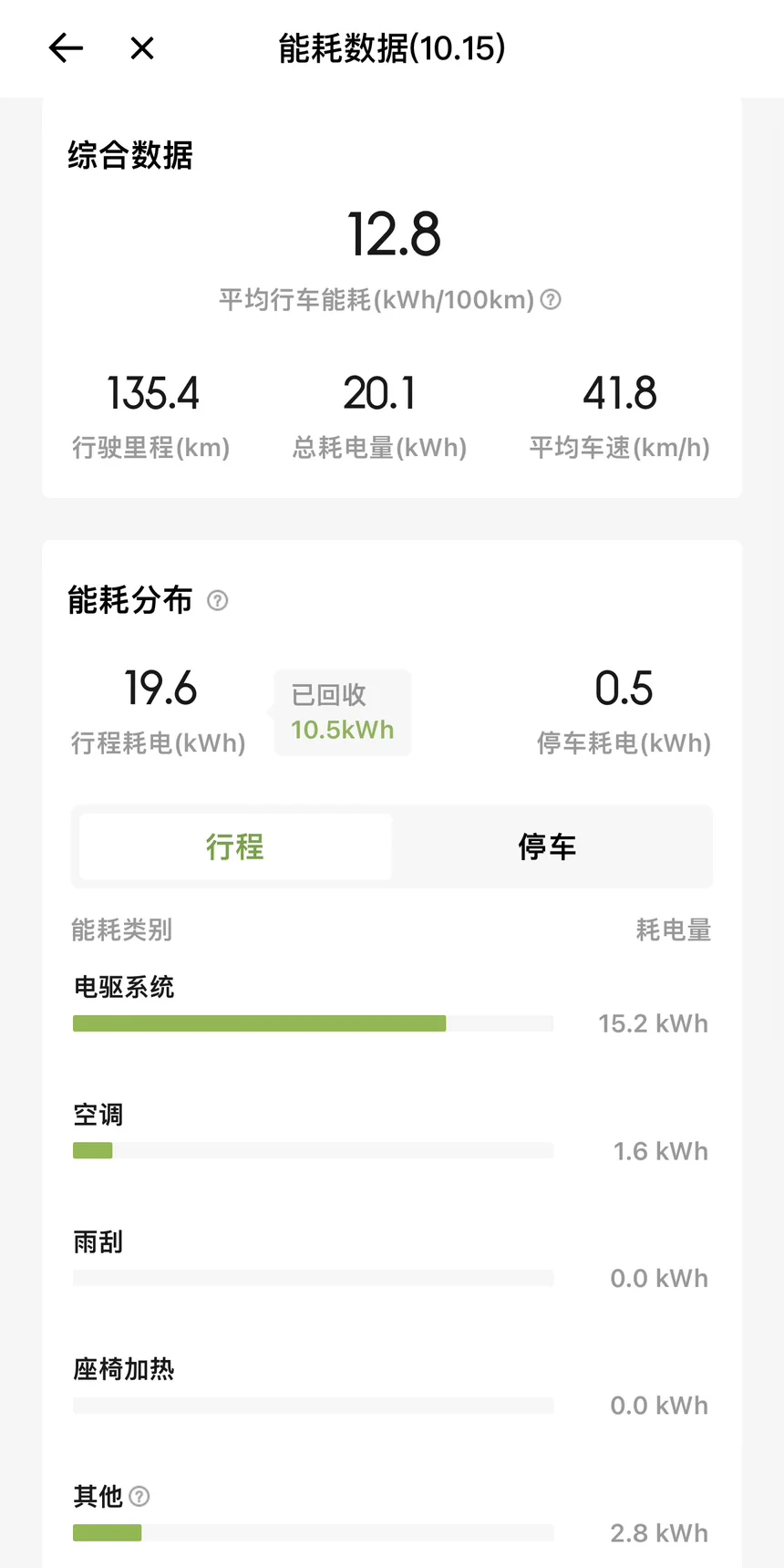 最后看下这一天G9的能耗数据吧,总行驶135.4km,平均能耗12.8kWh/100km,总耗电量20.1度,动能回收10.5度,非常能打。期待与G9的下次出行~