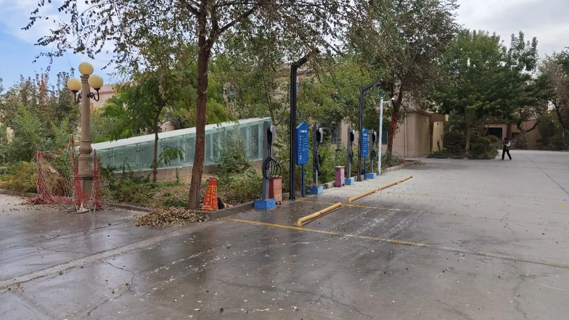 打卡吐鲁番市双城宾馆小鹏超充,旁边还有4个目的地充,速度很棒,地方很安静,宾馆院内也很好看,很多葡萄架,夏天肯定很美~🍁🍃🌱