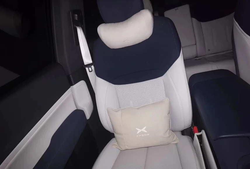 前排后座买了防踢垫,安装上完美配色,毫无违和感,以后孩子踢了好打理,后排安了头枕,加上小鹏特有的后排角度调整,我爸妈坐着都说比原来的530Li要舒服