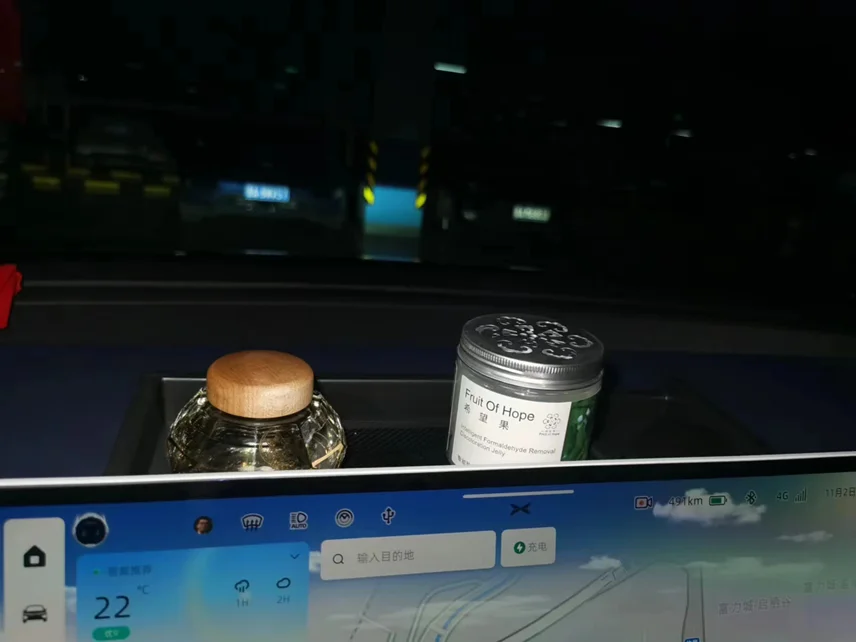 中控放置了一个除味剂,后备箱也有一个,一个基本没啥味道了