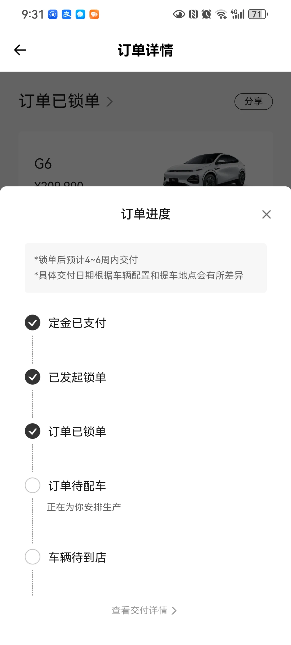 经过半个月对新能源车的咨询+了解,针对后续出的宋l和知己ls6,价格这一块确实感人,于是果断订了小胖子。图片确实一看不咋地,实车看了之后属于耐看型,试驾了高配,能耗14这样,整体不错,口碑也很好,于是订了低配!14年的老司机,自驾这一块确实不太需要,自从订车,就一直看进度,希望自己的爱车早点到!也希望小鹏的产能继续努力!
