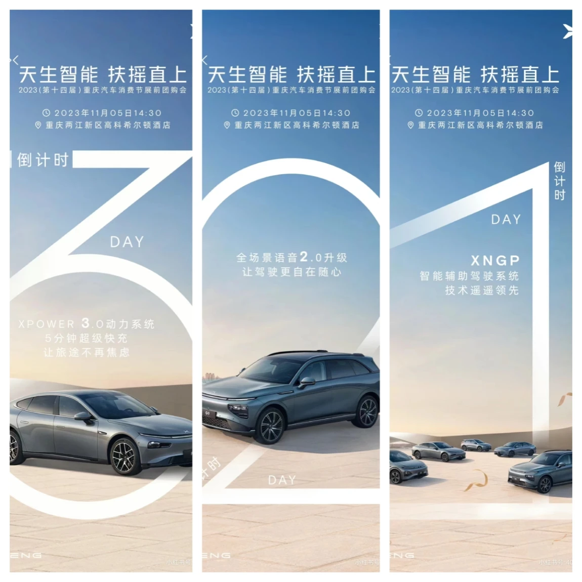 2023年11月5日,小鹏汽车在重庆举办了一场别开生面的体验、试驾、团购会,吸引了众多消费者纷纷前来参加,我当天也去体验了一下小鹏P7i,去感受了小鹏活动的氛围。活动开始前3天就在小红书上预热了。