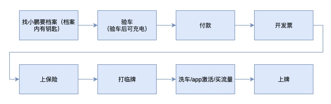 整体流程如上图,其中倒数第二个环节的顺序是可以机动的,比如洗车可以在验车后就让工作人员安排,因为要排队的。