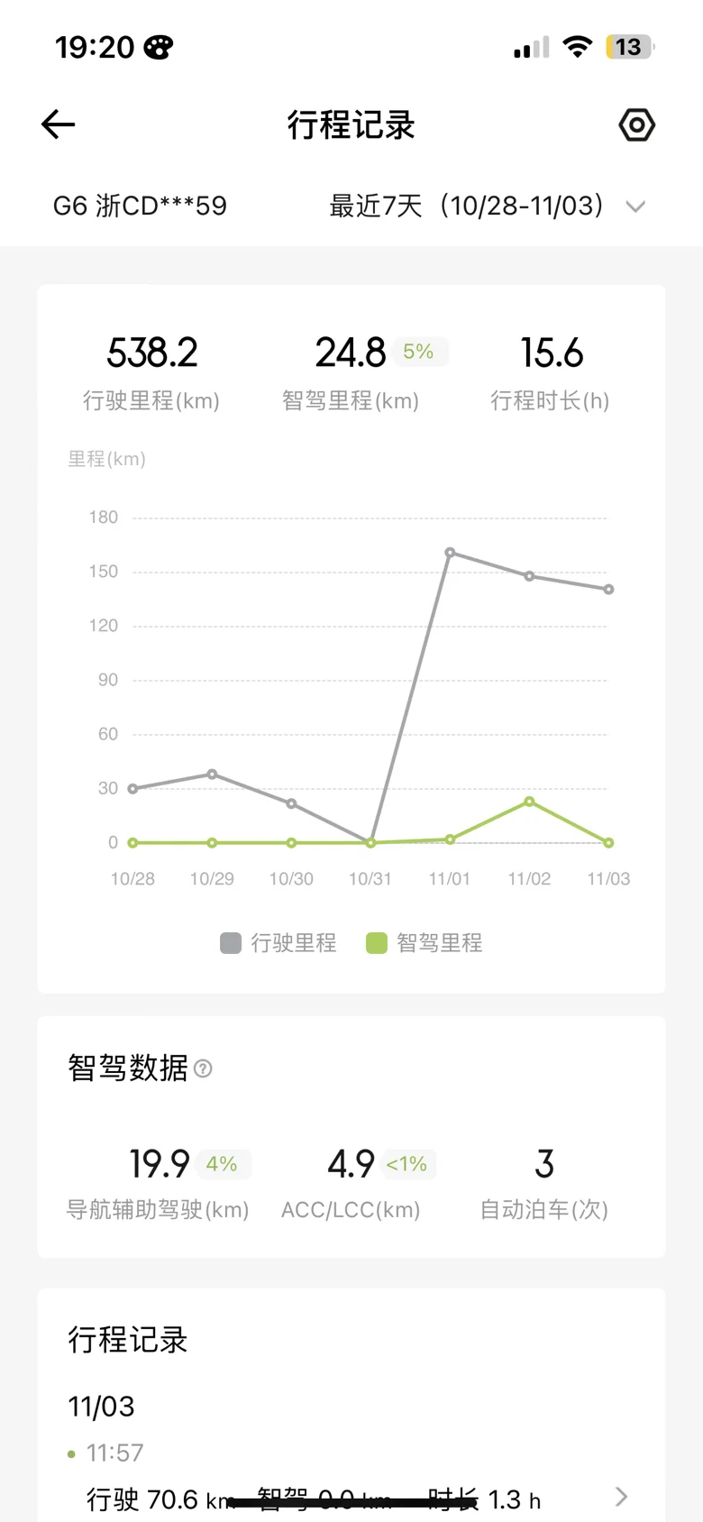在车上和同事聊起了小鹏鸡柳的智驾,同事还开着油车,对于辅助驾驶还是比较担忧,认为自己在最近几年应该不会买电车,更不会使用辅助驾驶功能,因为我自己也是刚通过了小鹏APP上的考试,所以使用上也比较谨慎,只有在第二天,在高速上开了24.8km的智驾里程,其中19.9km是高速NGP辅助驾驶,4.9km是城市道路的ACC/LCC,整体上还是处于正在学习的阶段,后面在自驾去永嘉县玩的时候,就开始大幅度使用NGP了,这里只是有个初步印象,对于辅助驾驶还是有点不放心,眼睛总是时刻关注着路况,也比较累,不过整体上行驶是比较平稳合理的。