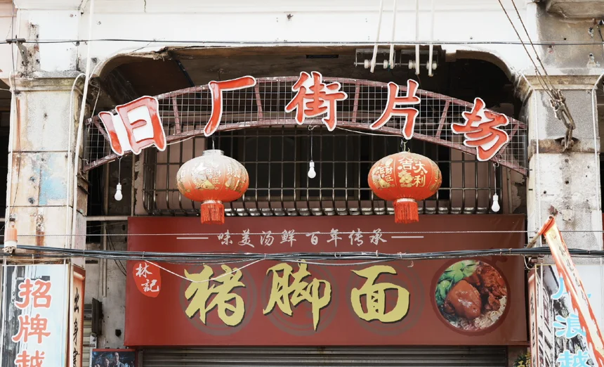 第一站来到了三十三墟,这里是《狂飙》的拍摄地,小巷里满是江门的传统建筑,充满古色古香的市井气息,午饭打卡了强哥同款猪脚面!