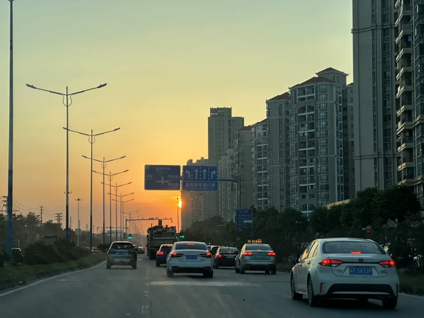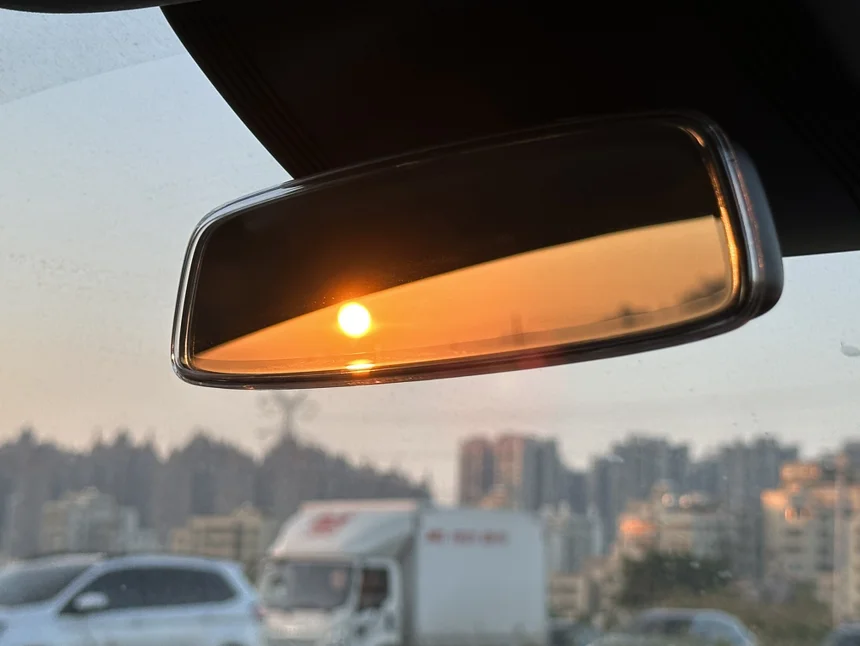 去吃晚饭的路上偶遇后视镜里的夕阳🌇太美啦