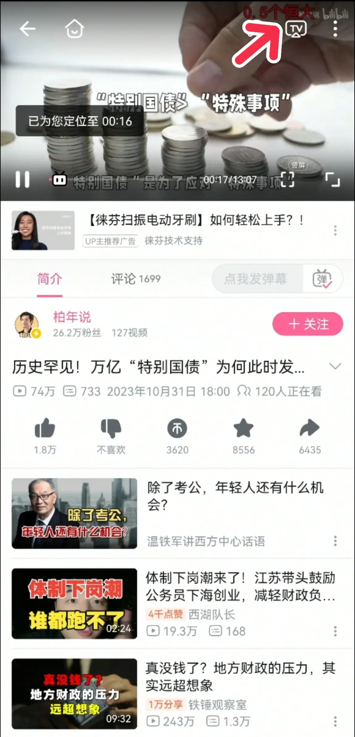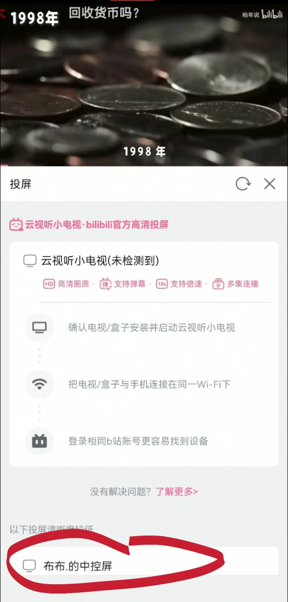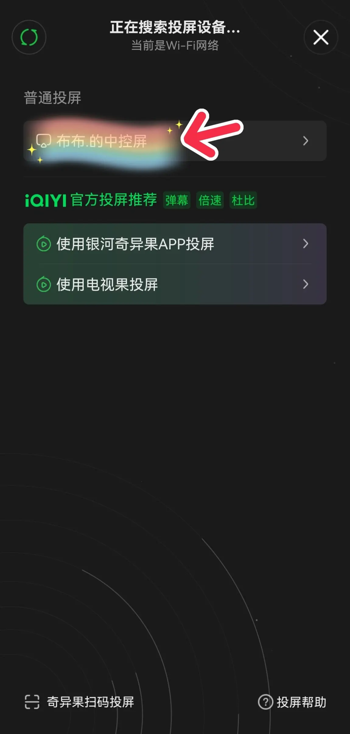第3步,手机视频投屏。以爱奇艺为例,打开爱奇艺APP,点开一个视频,点击右上角的“TV”键后,开始寻找投屏设备,当出现车机的设备名称后,点击,就成功连接上啦。