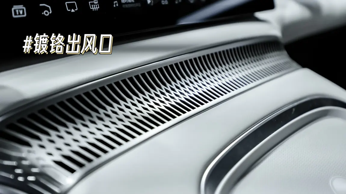 9️⃣前排中间左右出风口都是竖格栅镀铬造型,科技感十足 。