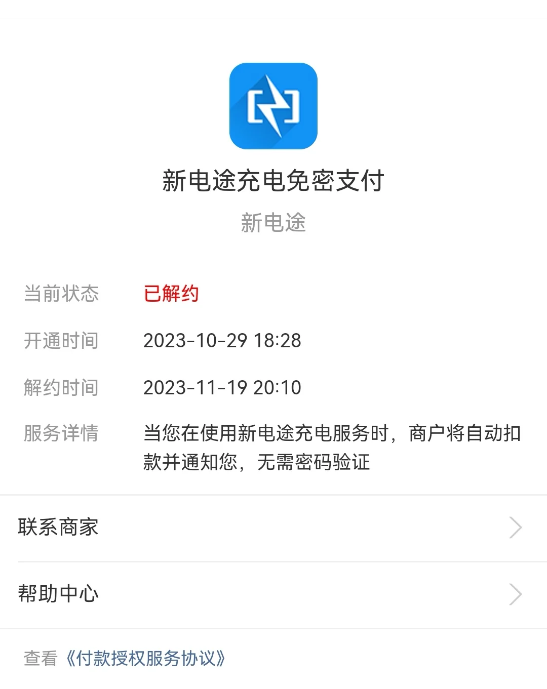 第三坑:我不知道什么时候居然签了免密支付!!!(赶紧解约)然而我支付顺序的第一张不是浙商信用卡!!!还好有一张新电途10元优惠券,没有亏太多😭