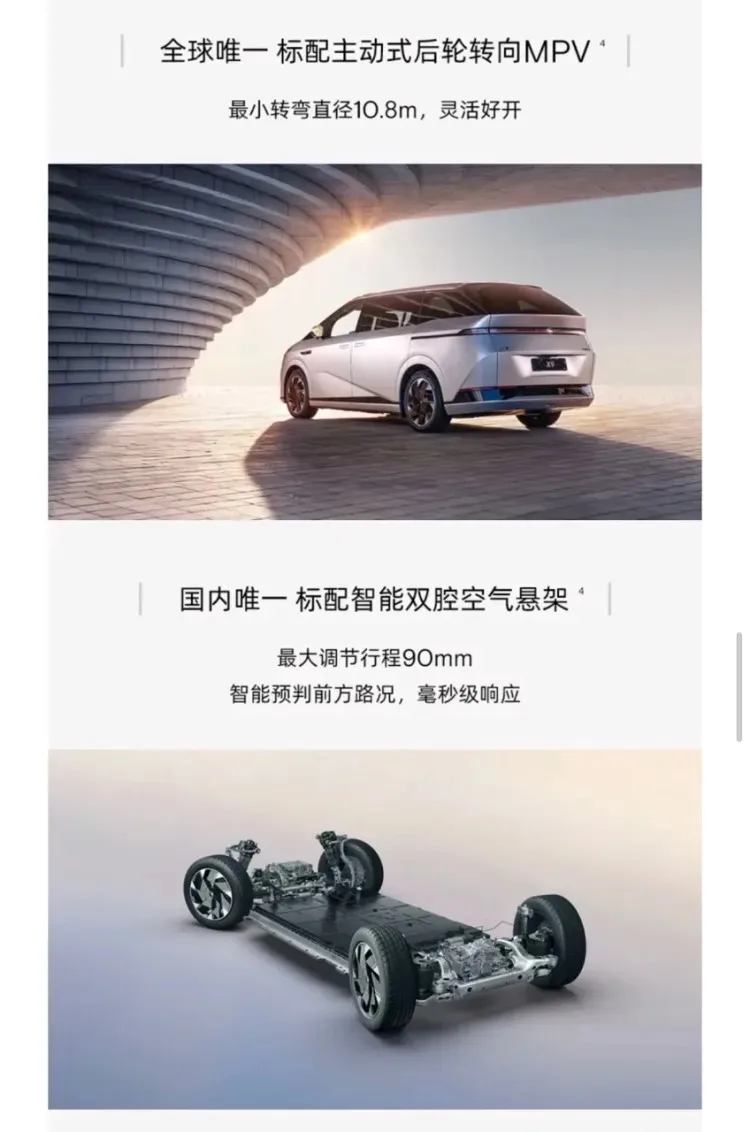 #晒出X9超智驾时刻# 看完后X9后真的有被震撼到空间超大,后排座位放下来,可以当一个露营的大床房,对开的扶手箱很方便,后备箱可以立放7个行李箱,很nice!标配的激光雷达真香…双腔空悬😍,小冰箱很适合带娃的家人哦…整体外观很平整,续航里程也很理想哦,对了还有天玑OS系统,后轮转向…小鹏X9整体来说真的很带感,值得拥有!