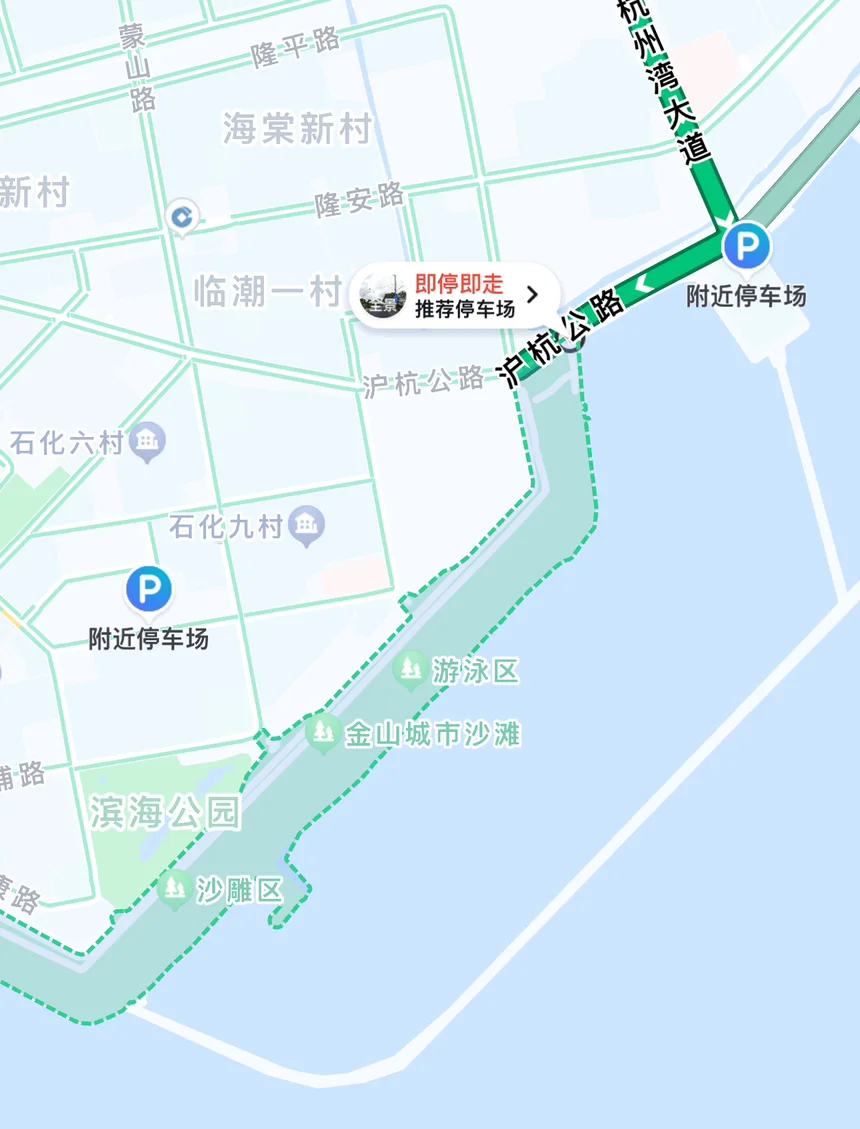 周日阳光明媚,不冷不热,天空很蓝,非常适合出游,但是新手上路也不敢开远,于是决定去金山城市沙滩看看,路线选的是金水路和杭州湾大道,金山虽然属于上海远郊,但是靠海的区域景色空气还是非常不错的,路也比较新划线很清晰,路上车不多,非常适合新手开。