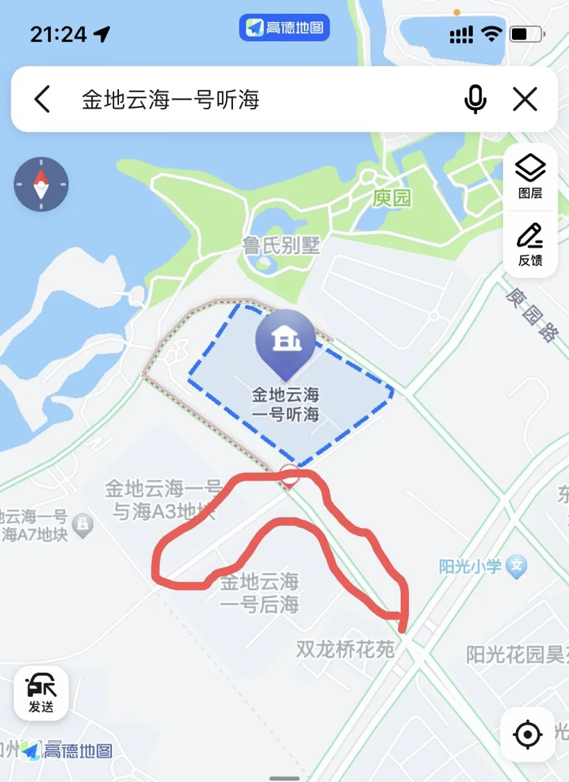 鹏友们可以直接导航到金地云海一号,然后可以将车停放在下图中红圈的街道两侧,整体都很宽敞,能停放很多车辆。