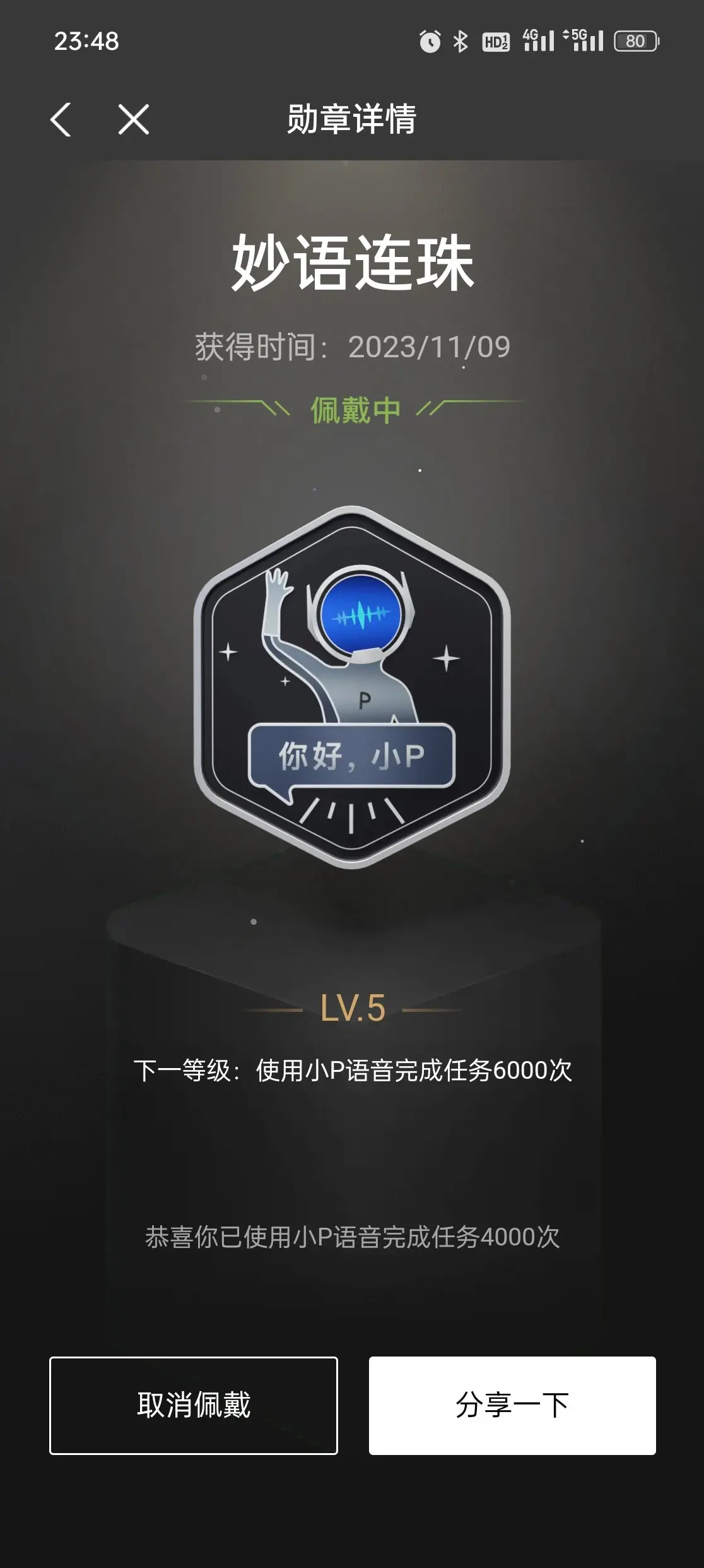 #鹏友们的1024# #我的智能中心# 不知不觉妙语连珠都已经LV.5了,从4级到5级感觉没用几天的时间。每天让小P帮忙导航、播放音乐、开360、开空调,这几个是喊的最多的,小P辛苦了,让我能够君子动口不动手。#浙鹏友车友会#