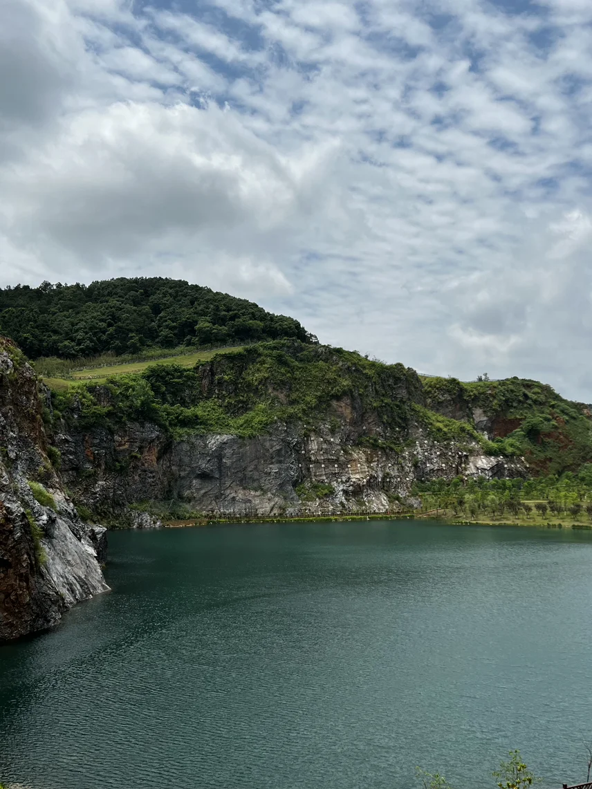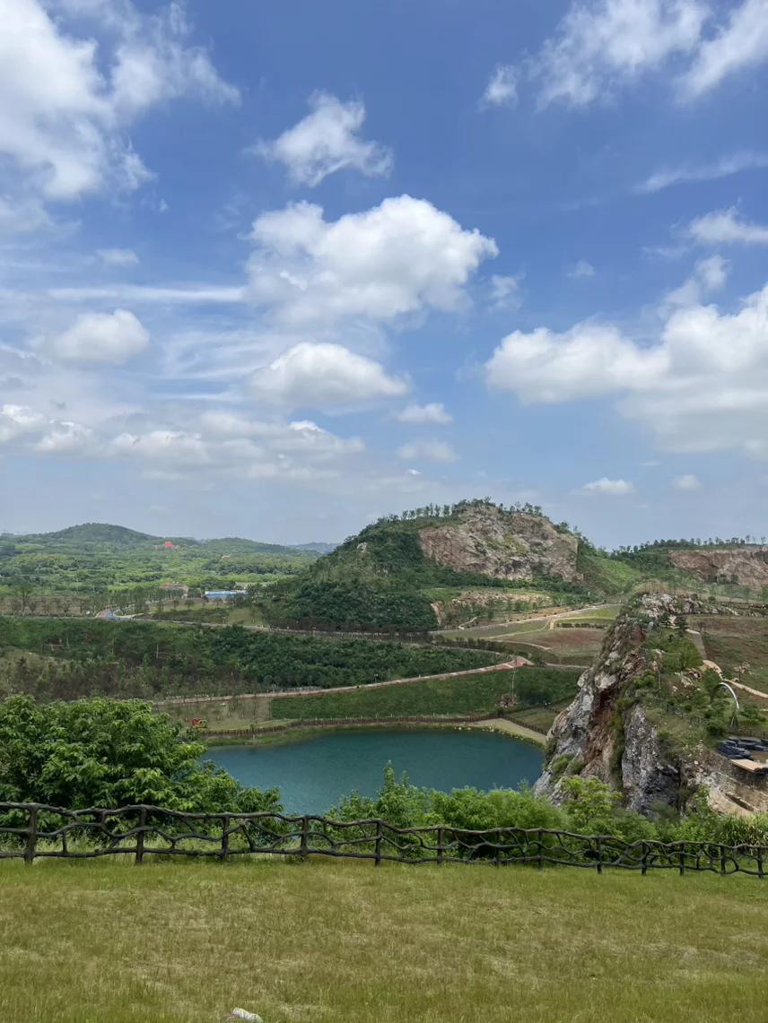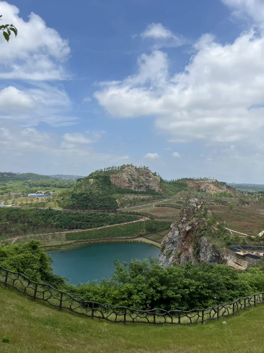 1⃣坐观光车或步行到矿坑下 一下车就可以近距离观看到由天然矿石形成的独有的湖蓝水面 想去蓝月谷很久了 没想到现在在武汉就能看到了‼