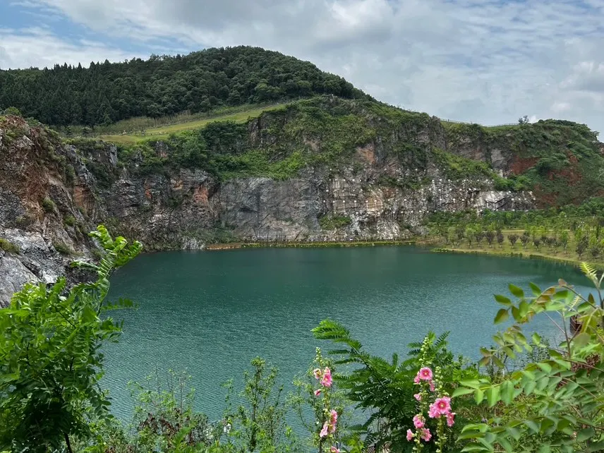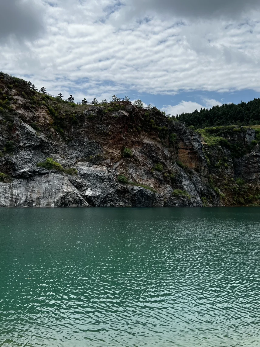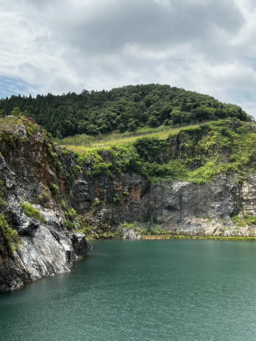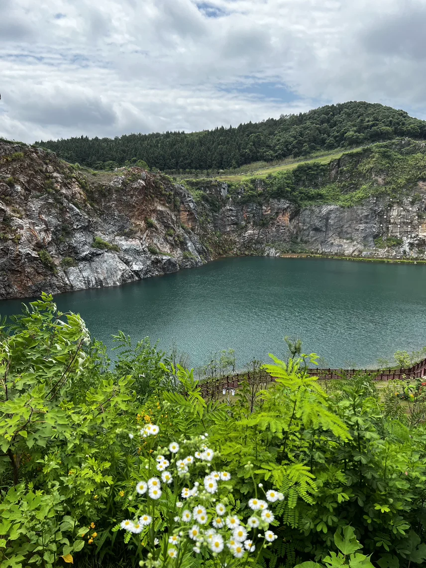 1⃣坐观光车或步行到矿坑下 一下车就可以近距离观看到由天然矿石形成的独有的湖蓝水面 想去蓝月谷很久了 没想到现在在武汉就能看到了‼
