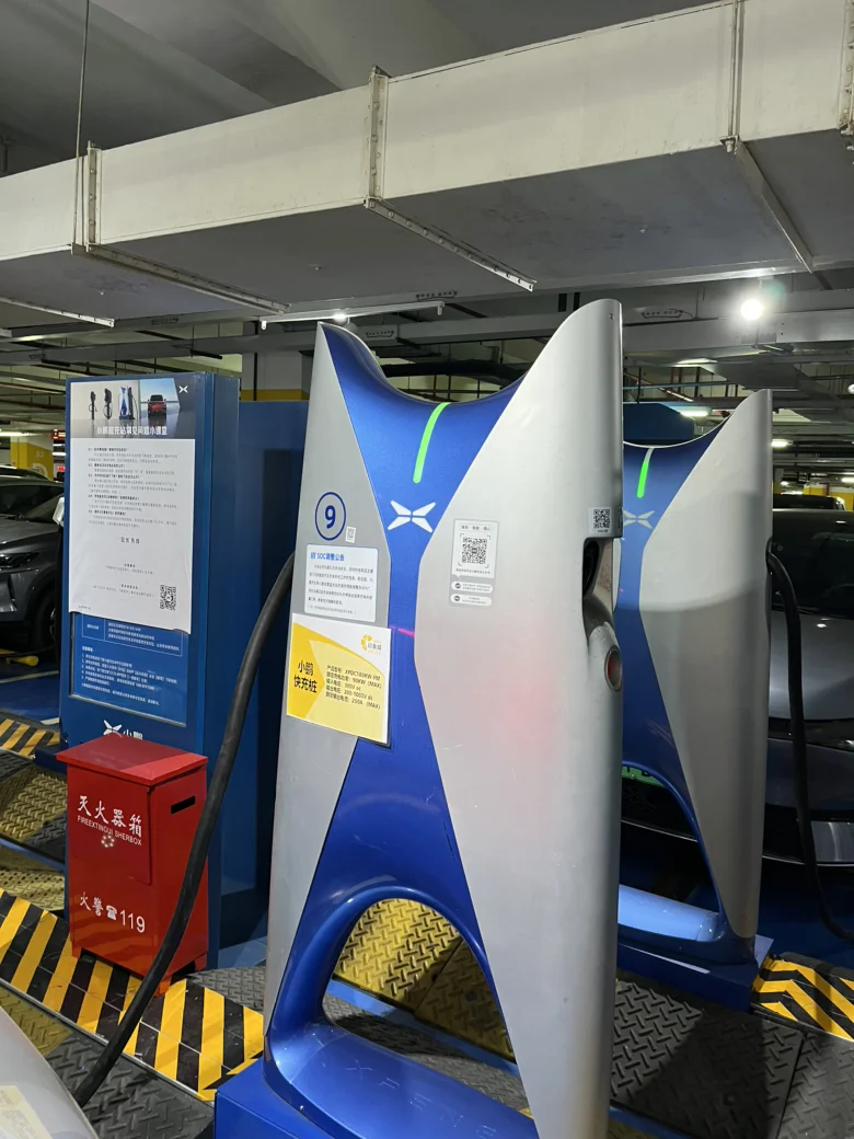 嘉定印象城有小鹏的充电桩,app 显示功率小于 90kw 好像不是 S4 超充(´・_・`),因为经常来这里,小鹏的充电站位置很好找一路车库都有指示牌,而且跟特斯拉的靠一起(⊙o⊙)。到了位置整个有空位,周末来冲点的人蛮多的,我这位置是刚空出来的☺️,第一次充,充电枪还是蛮重的呢!插上显示功率 60kw 左右,全程都是这个功率,只有最后 5%的功率降到 十几 kw。我这是充满的,全程用时 66 分钟,时间还是比我想象中的要长了,还好有免费停车。我这楼上逛街,等快充好就下来回家了,在最后等充满的时候有个佩奇在等我出来🌚。