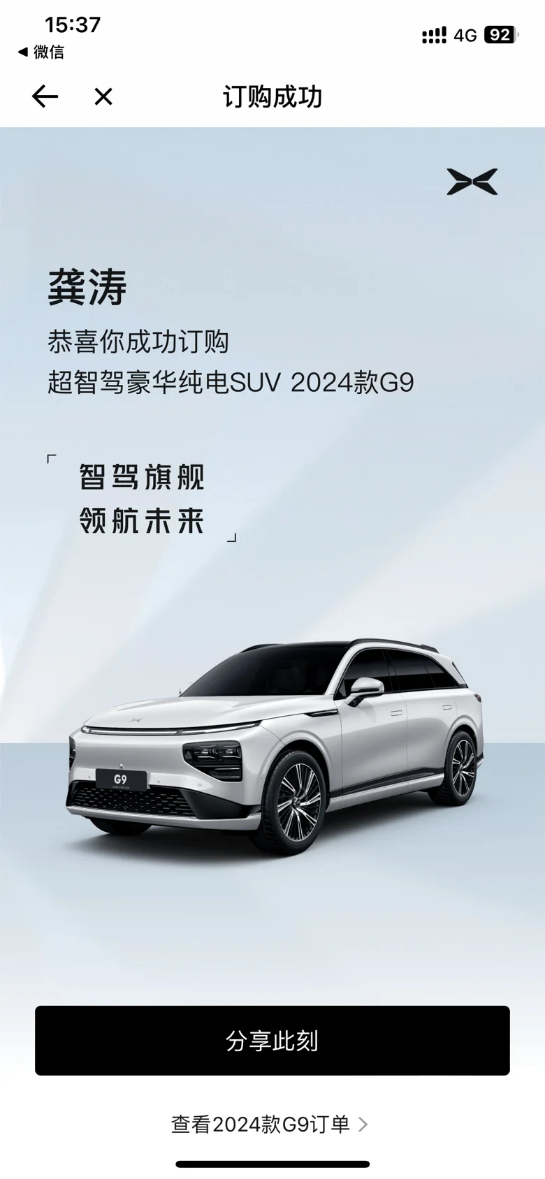 小鹏G9:老款出来的时候试驾过一次,被遥遥领先的辅助驾驶技术惊呆了,空间也不错,可惜老款价格虚高,一直在观望,没有下手,直到2024款G9上市,售价怒降7W,性价比非常高,又试驾了两次,下定决心,就它了,哈哈😃