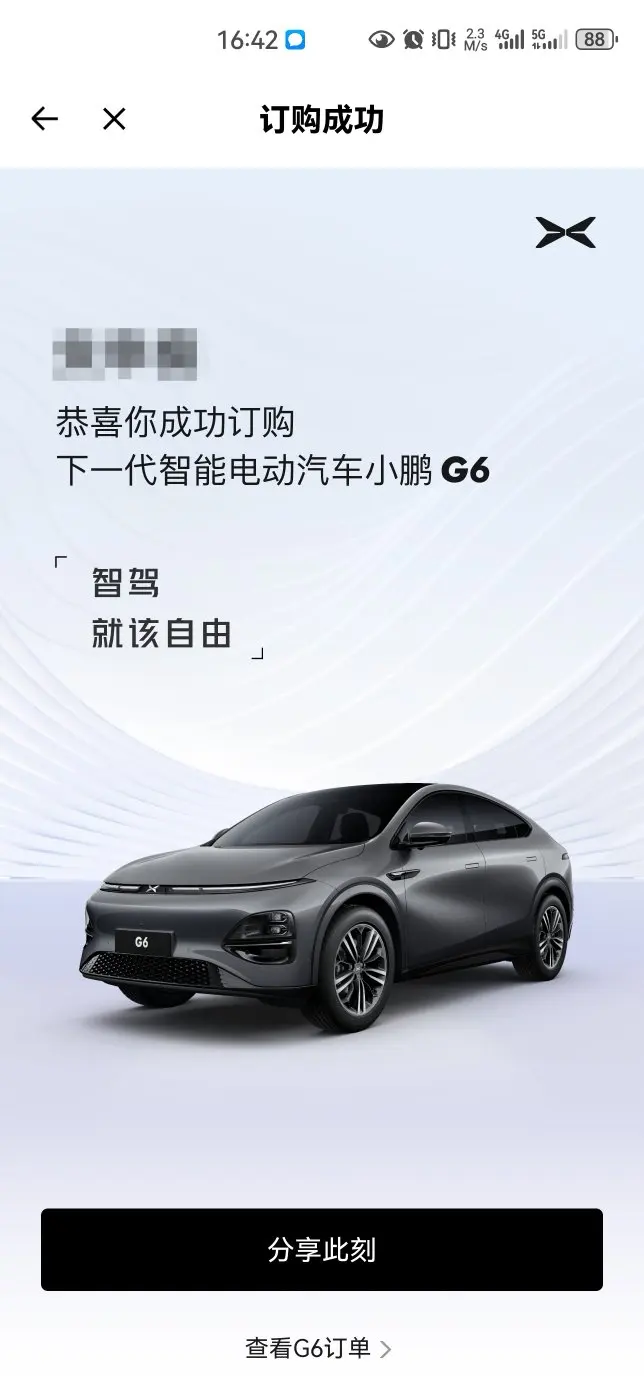 因为补贴政策规定合同时间需要在16号以后,销售就建议我把周末下订的小鹏G6退款(感觉锁单后其实也能退款),重新下个订单,以满足时间要求。
